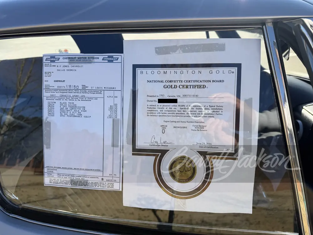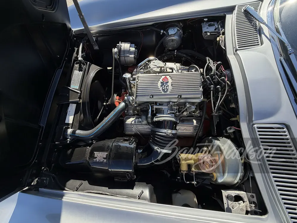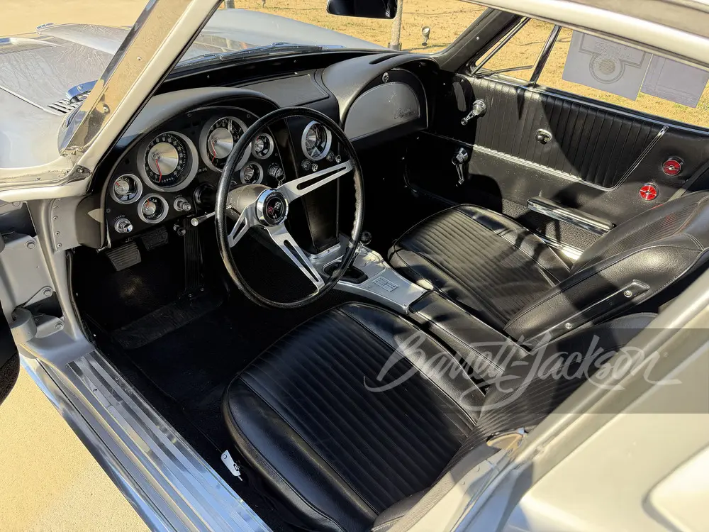 Powered by its original, matching-numbers L84 327ci V8 rated at 360 horsepower and paired with a Muncie M20 4-speed manual transmission, this factory Z06 example carries the mandatory posi-traction rear end that defined the package. It is one of just 63 Corvettes produced with the N03 36.5-gallon “Big Tank” fiberglass fuel cell, wrapped into the $1,818 Z06 performance option that added competition-focused hardware, including uprated suspension components, a larger front sway bar, and heavy-duty finned drum brakes with sintered linings and a unique dual-circuit master cylinder. Finished in Sebring Silver over a black interior, it wears tinted glass and 6.70-15 blackwall tires, and it stands tall as both Bloomington Gold Certified and a Top Flight award winner. Restored by the renowned Naber Brothers in 2015, shipping records trace its original delivery to MF Jones Chevrolet in Dallas, Georgia, and its condition today remains concours-ready.