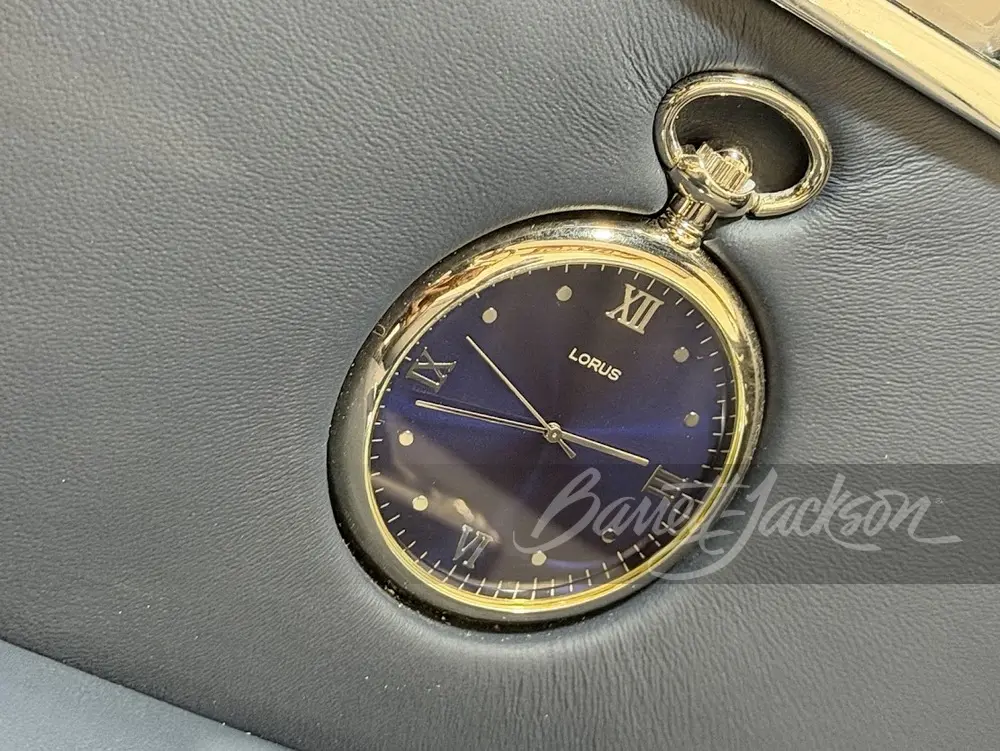 Hydroelectric power steering sharpens the driving experience, while the fiberglass body was stripped bare and refined with a smoothed firewall, custom inner fenders, a subtly reworked rear for quad exhaust, and a power-operated hood with flush LED lighting. Finished in Why Knotty Blue with Ferrari soft white coves, the undercarriage received the same meticulous attention as the exterior. Inside, a handcrafted cabin trimmed in imported Italian leather was created using advanced 3D scanning and printing technology, capped by a vintage pocket watch mounted in the dash. Custom billet Schott wheels—19 inches up front and 20 in the rear—wrapped in Diamond Back whitewall tires complete the modern-classic stance.