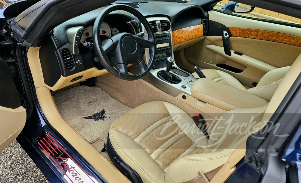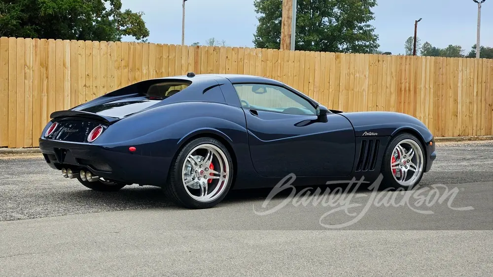 Built as a singular creation, the 2005 Corvette Anteros Targa Coupe is powered by the factory 400-horsepower 6.0-liter LS2 V8 paired with a 6-speed manual transmission. Its hand-laid, full carbon-fiber body is finished in Dark Ming Blue Metallic, giving the car a distinctly European presence far removed from its production roots.