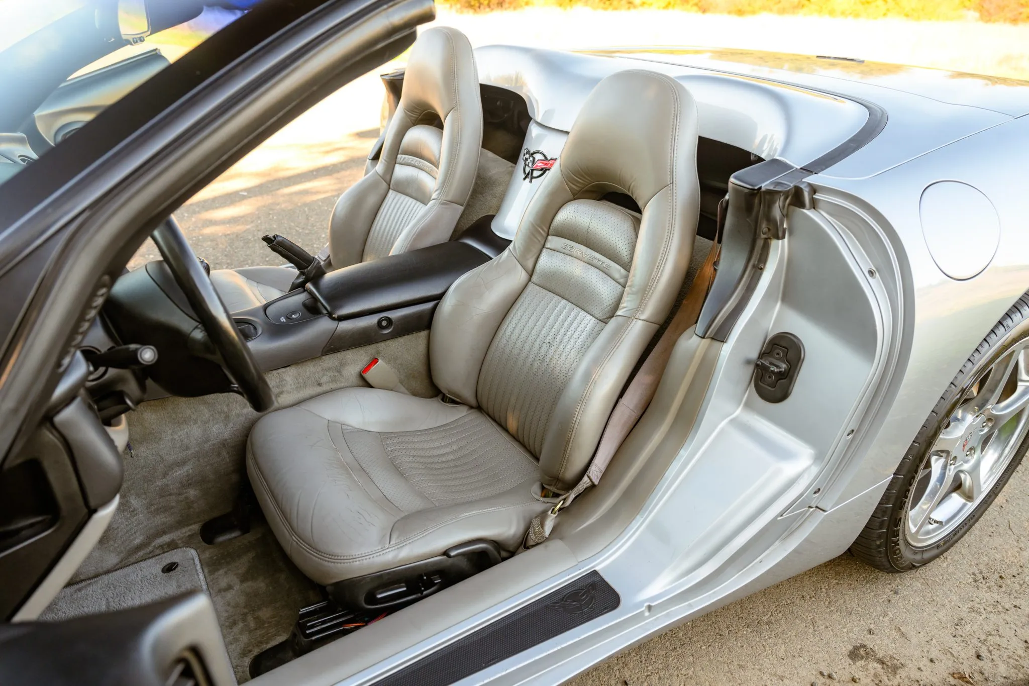 “This 1999 Chevrolet Corvette convertible has spent a total of 21 years registered in California, and it is powered by a 5.7-liter LS1 V8 paired with a six-speed manual gearbox and a limited-slip differential. The car is finished in Sebring Silver Metallic over Light Oak leather, and equipment includes a black convertible soft top, aftermarket exhaust outlets, Active Handling, 17″ and 18″ polished five-spoke wheels, power-adjustable seats, a head-up display, dual-zone automatic climate control, and a Bose sound system. This C5 convertible has 83k miles and is now offered by the selling dealer at no reserve with a clean Carfax report and a clean California title.”