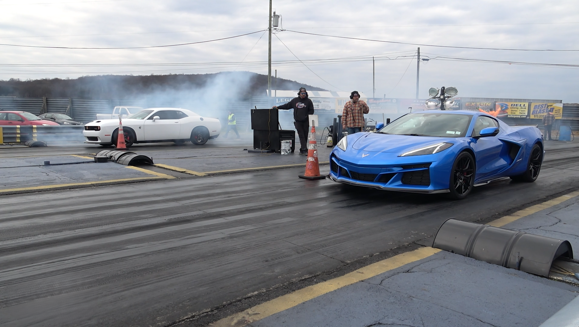 Island Dragway in New Jersey hosted a classic American performance duel as the Dodge Hellcat Challenger faced off against the Chevrolet Corvette Z06 in a high-stakes quarter-mile run filmed by the folks from Import 2 Race on YouTube.