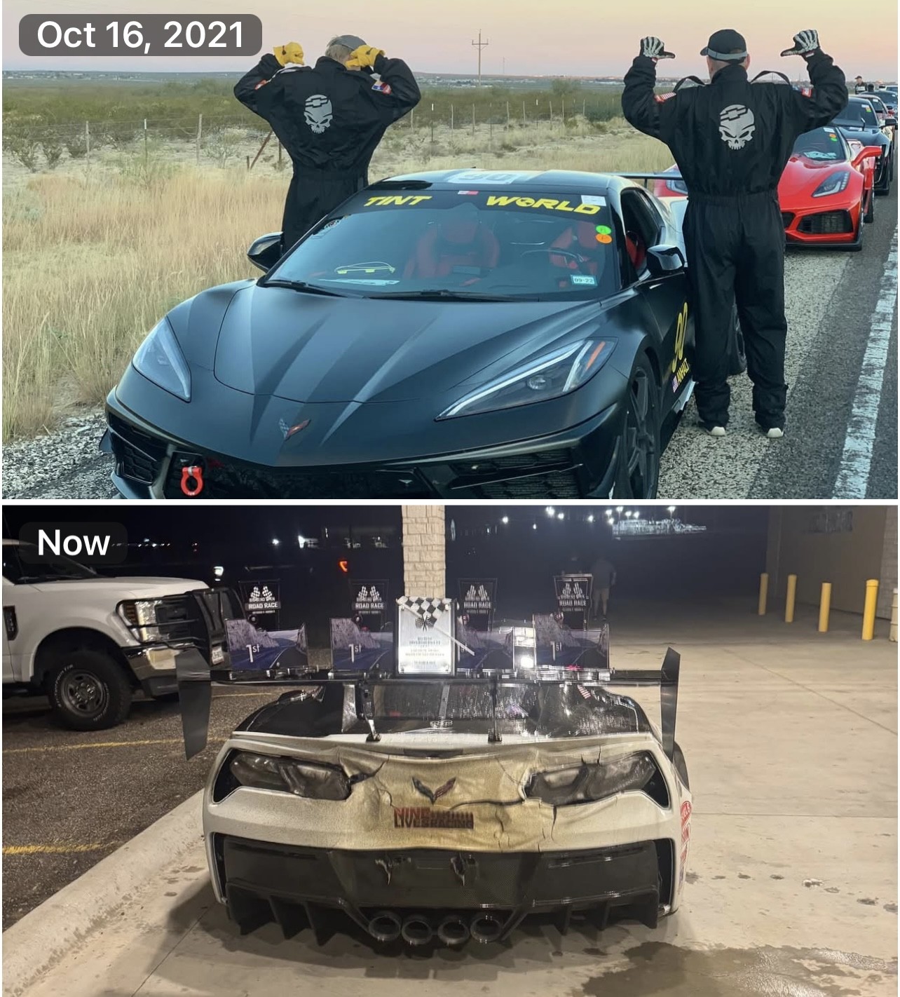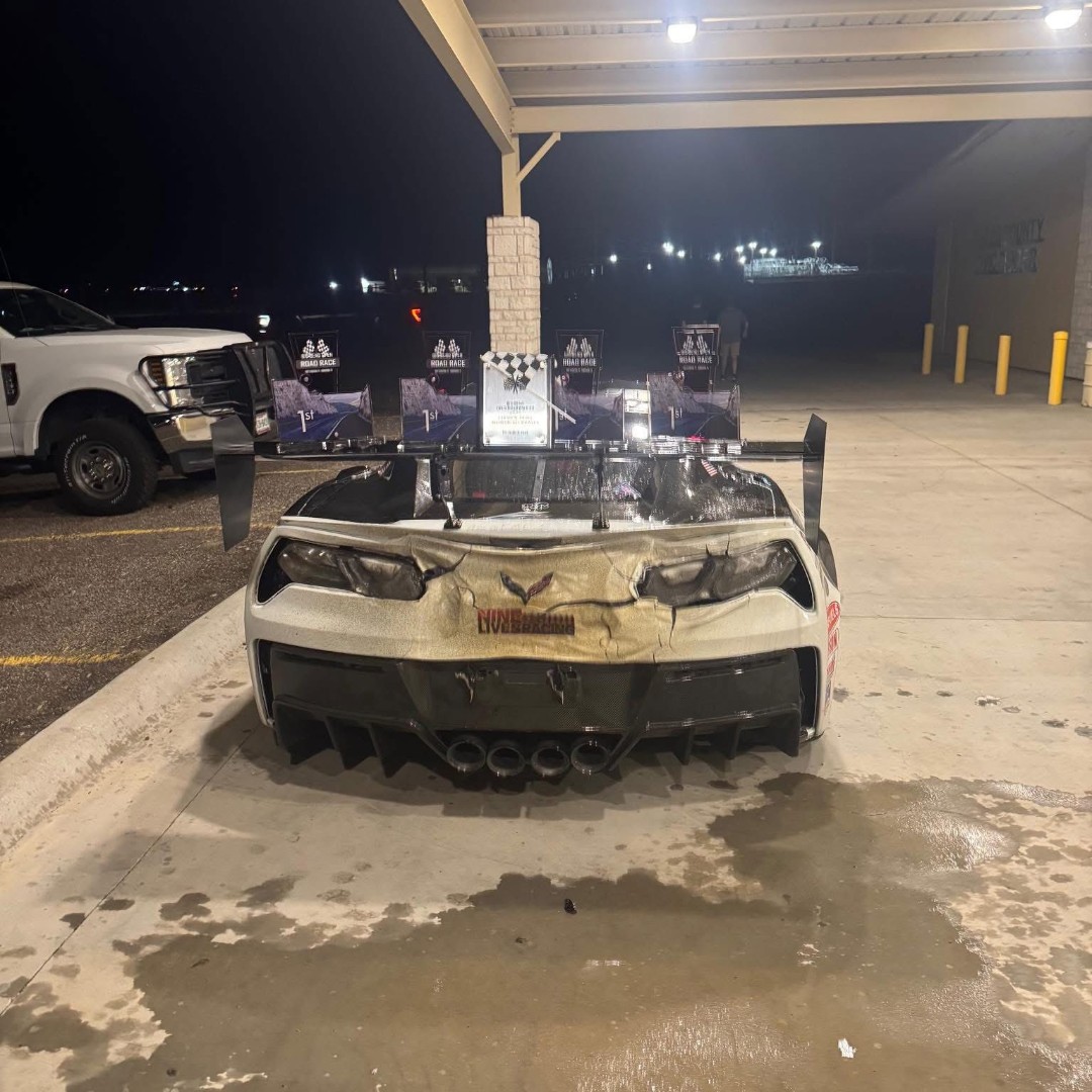 John took his remarkable C7 ZR1, reported to be pushing 1000 horsepower, and eeked out the new unlimited class record by posting an average speed of 173.004 over the 118 miles, with a top speed of 219 mph. What type of modifications did it take for John (and his navigator Kelli Hughes) to melt the record and his rear bumper in the process? According to the reporting we’ve curated, his ZR1 featured “a modified top end with improved cylinder heads and a supercharger, as well as headers and straight pipes.” The heat from 1000 horsepower exiting through the headers and straight pipes certainly explains the transformation of the rear bumper.
