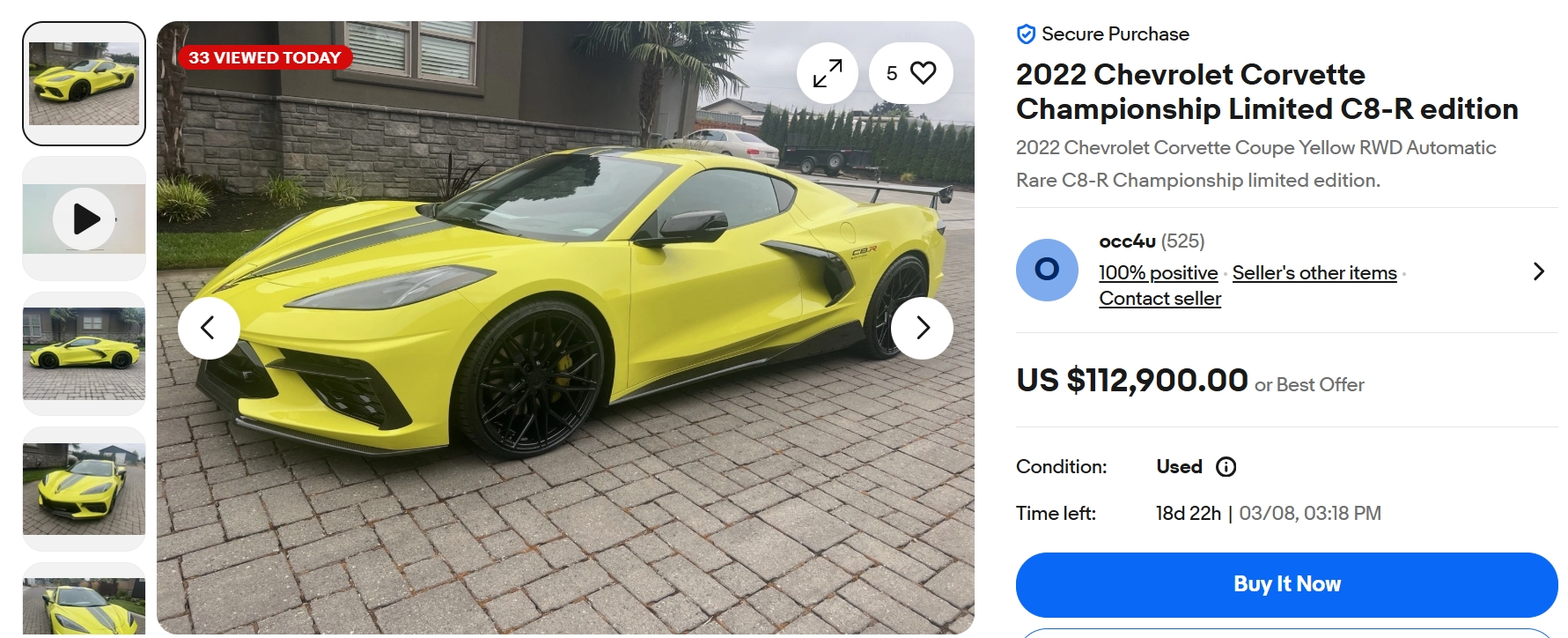 You won't believe how many days this C8.R has been on the market! Photo Credit: eBay