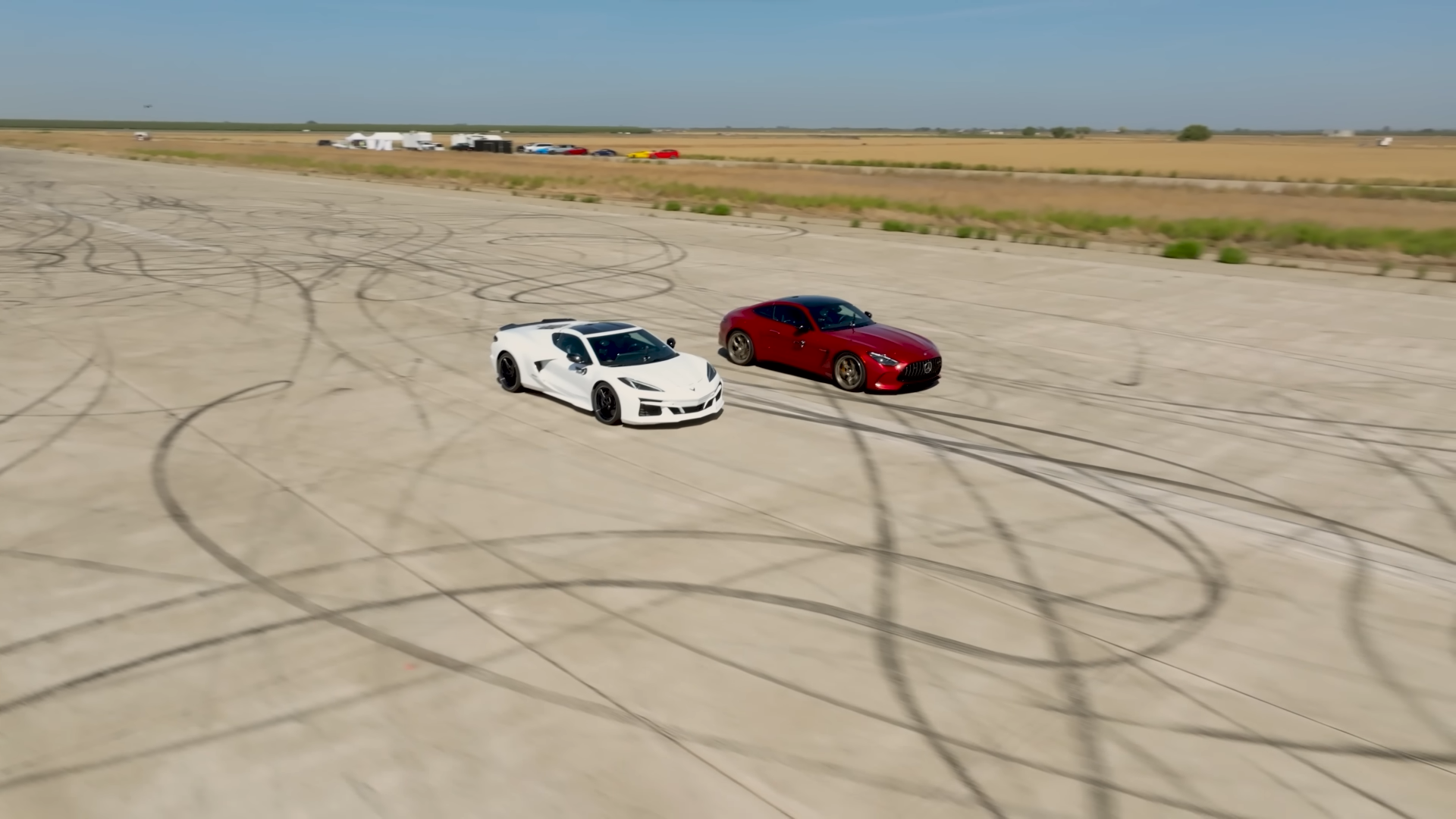 In the Edmunds race format, which includes hard braking and a 180-degree turn, the Corvette did jump ahead off the line in both runs. However, as speeds increased, the Mercedes consistently reeled it in. The AMG braked later, turned with more precision, and exited corners harder, pulling away on the straights to win both races.