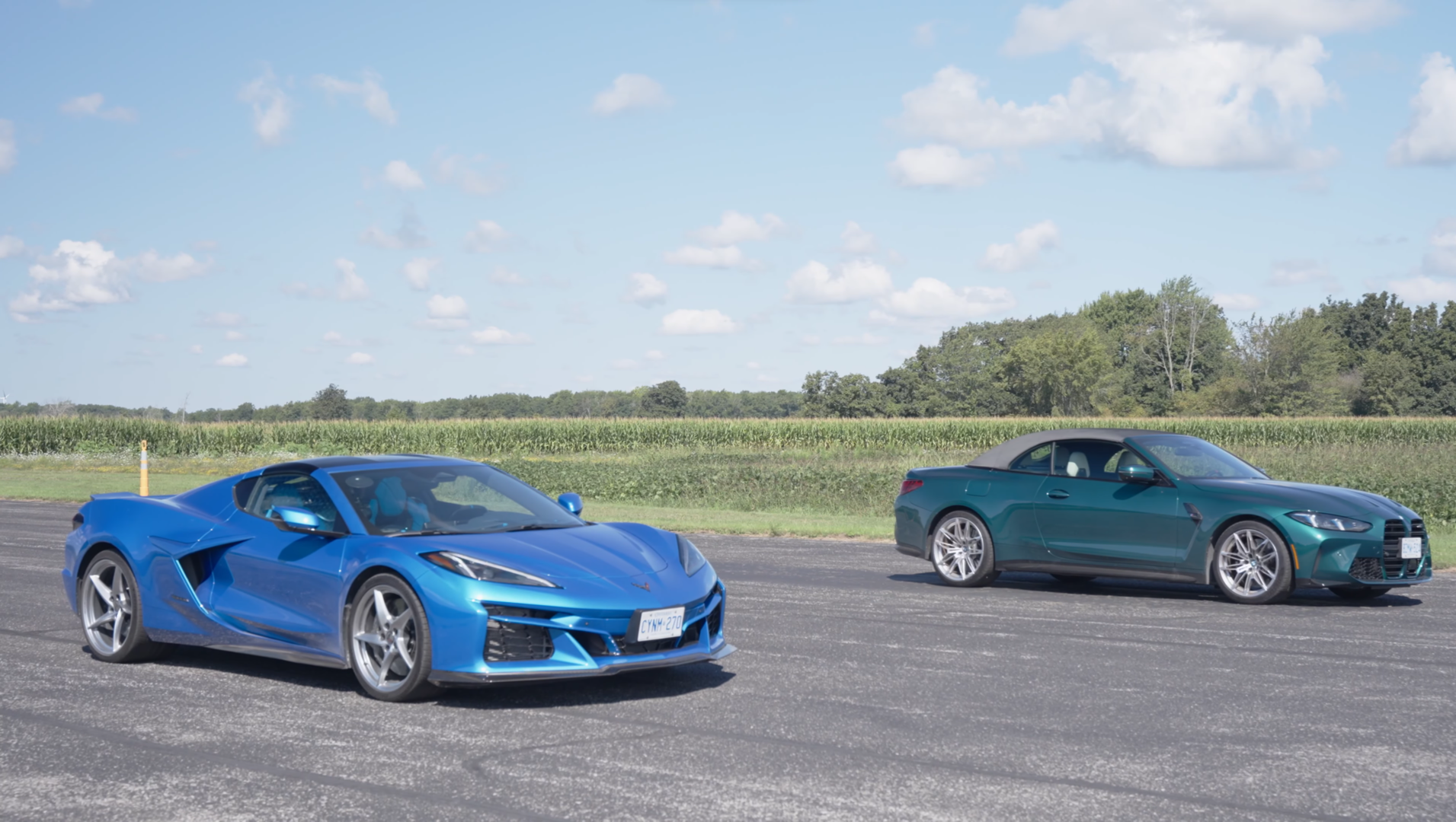 This matchup organized by the folks from Sam CarLegion on YouTube pits BMW’s all-wheel-drive M4 Competition xDrive Convertible against Chevrolet’s hybrid, all-wheel-drive Corvette E-Ray.