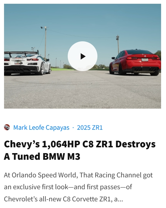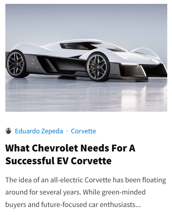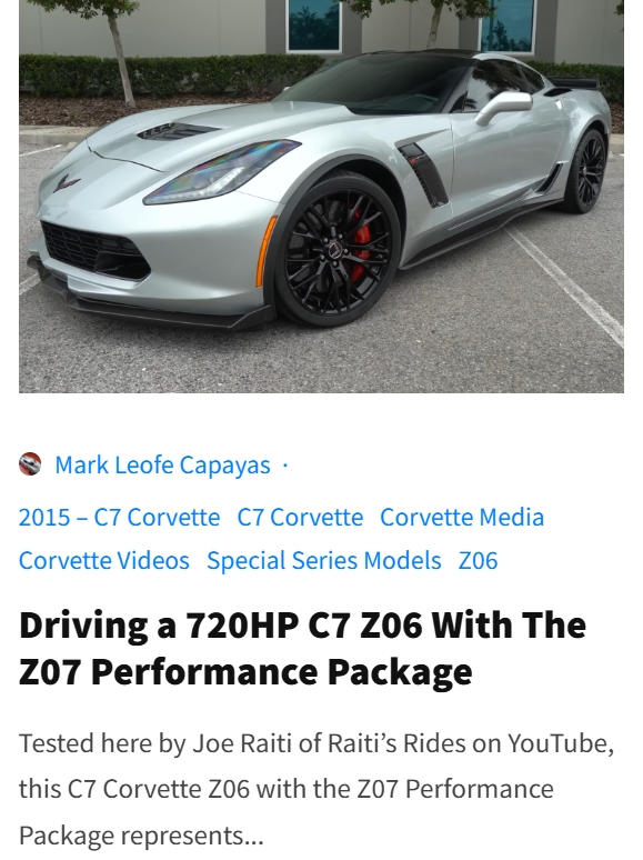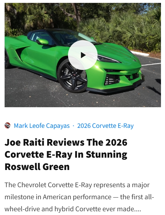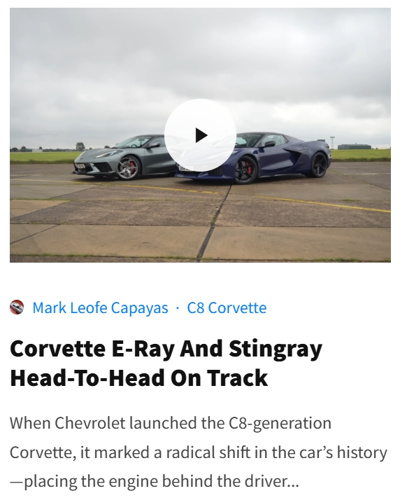 (E) Video Features: We search the internet for the best Corvette videos from the most popular YouTubers.