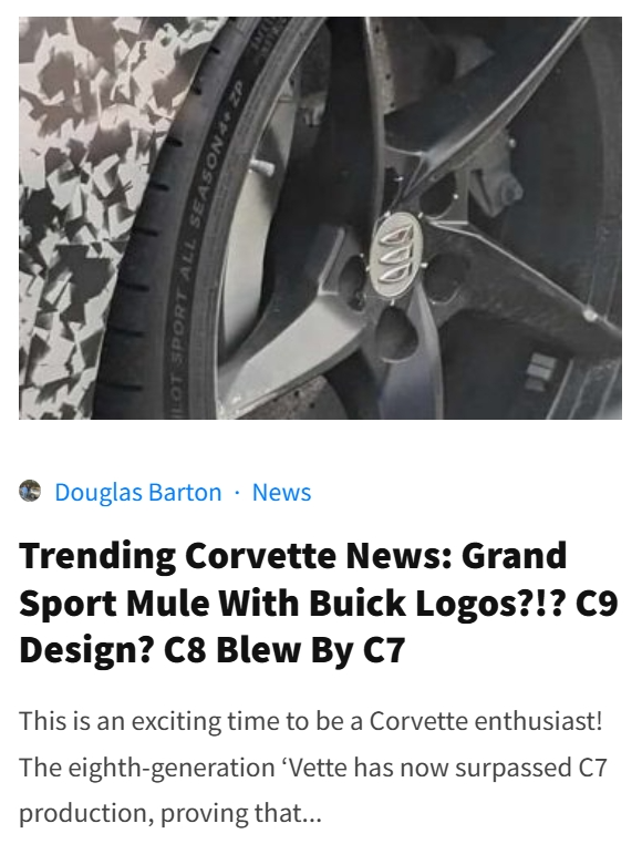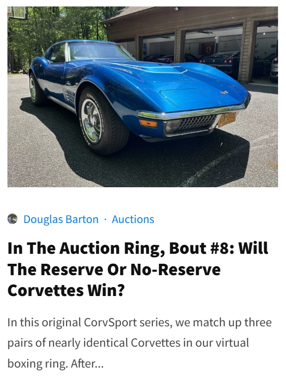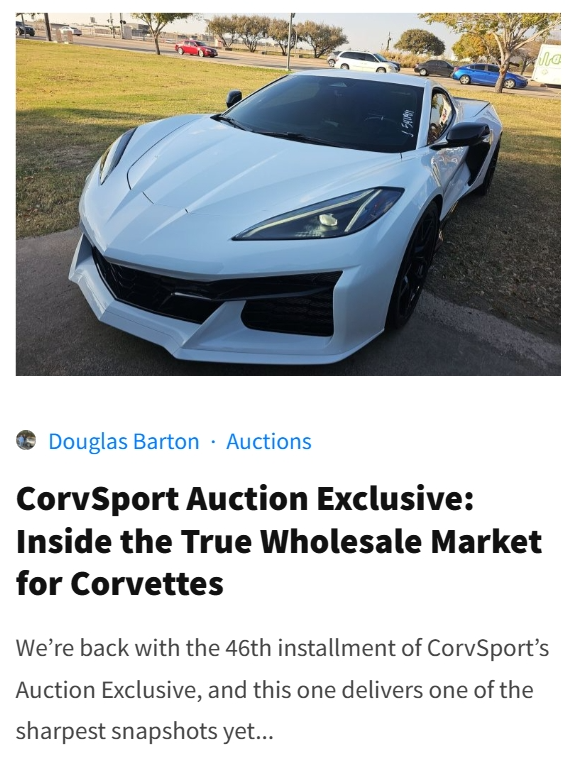 (B) Marketplace Analysis, Deep Dives, & Auction Results: Nobody covers the Corvette markets like CorvSport does. With features like our exclusive Wholesale Corvette Market Report, Market Watch, Corvette Bargain Hunting, and Garage Queens For Sale, you will never be left wondering what is happening in the Corvette market!