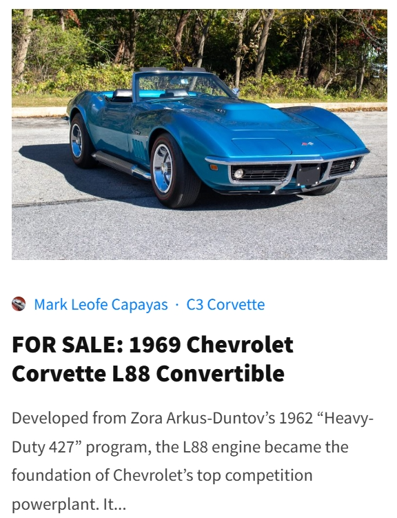(D) FOR SALE: We comb the internet and find the coolest and most interesting Corvettes and bring them to you in exclusive features like our Listings We Love, Bargain Hunting, Rare Finds, and Garage Queens series.