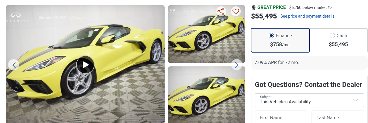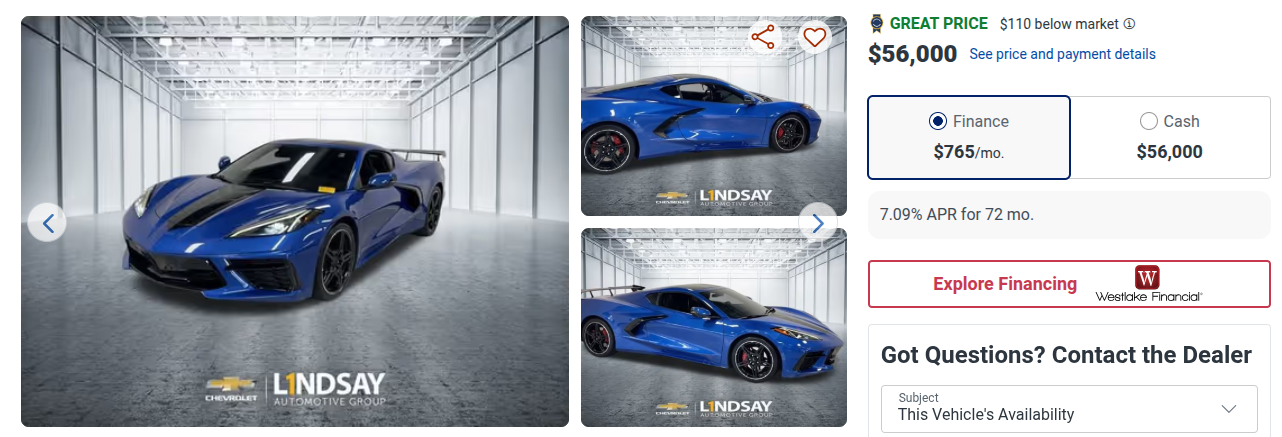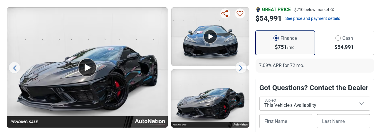 How cheap will our C8 Stingrays be? Photo Credit: Autotrader