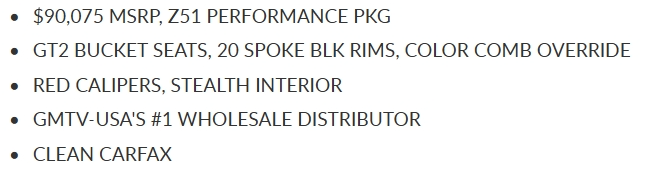 (Insights: With an MSRP over $90,000, the retail buyer of this beautiful Stingray will get some hefty value out of this 2LT Coupe. Another deal that was good for both the selling and buying dealers.)
