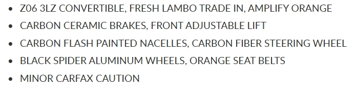 (Dealer Insights: It’s likely the 11k miles for a one-year-old Z06 was just too much for dealers to overcome, especially when paired with a not-so-perfect 4.7/5.0 condition report.)