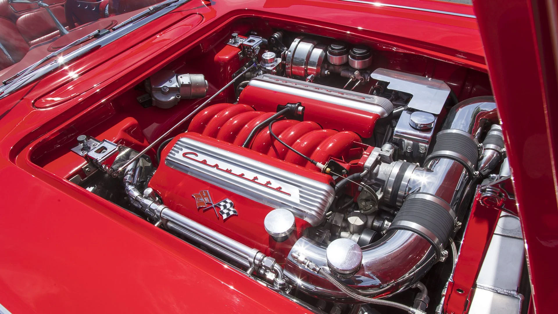 Wanting classic looks with modern performance, he commissioned Advanced Automotive Technologies of Michigan—led by former GM designer Steve Pasteiner—to rebuild a 1958 donor car. Finished in Signet Red with white coves, it features 16-inch “kidney bean” wheels, four-wheel disc brakes, and independent suspension on a custom chassis.