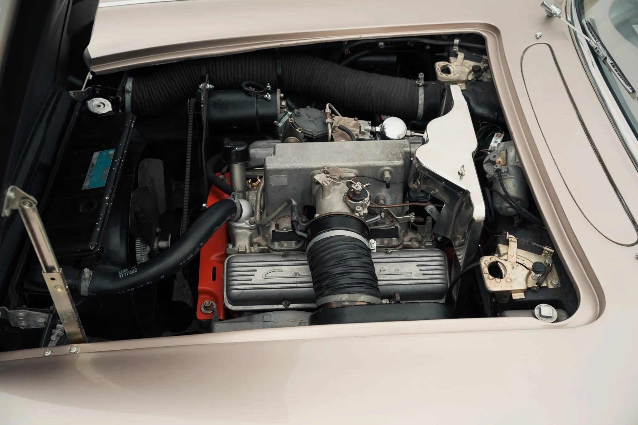 This example currently offered for sale on Bring a Trailer represents the model at its very best. Finished in beige with matching side coves and a coordinated beige interior, it presents in outstanding condition throughout. Power comes from the upgraded, fuel-injected 283-cubic-inch V8, rated at 315 horsepower and paired with a four-speed manual transmission.