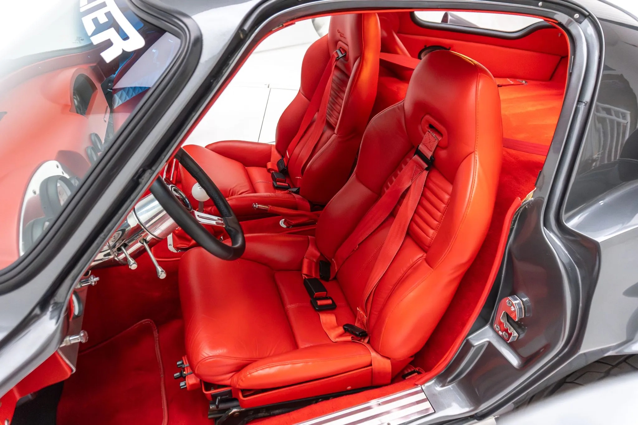 The exterior closely replicates the original Grand Sport developed by Zora Arkus-Duntov, featuring flared fenders, recessed headlights with covers, stainless and polished aluminum accents, brake duct detailing, French-style taillights, and a faux differential cooler. Paint quality is excellent throughout, with straight body lines, clean glass, and consistent panel fit. Halibrand-style 17” wheels house C4-style disc brakes at all four corners.