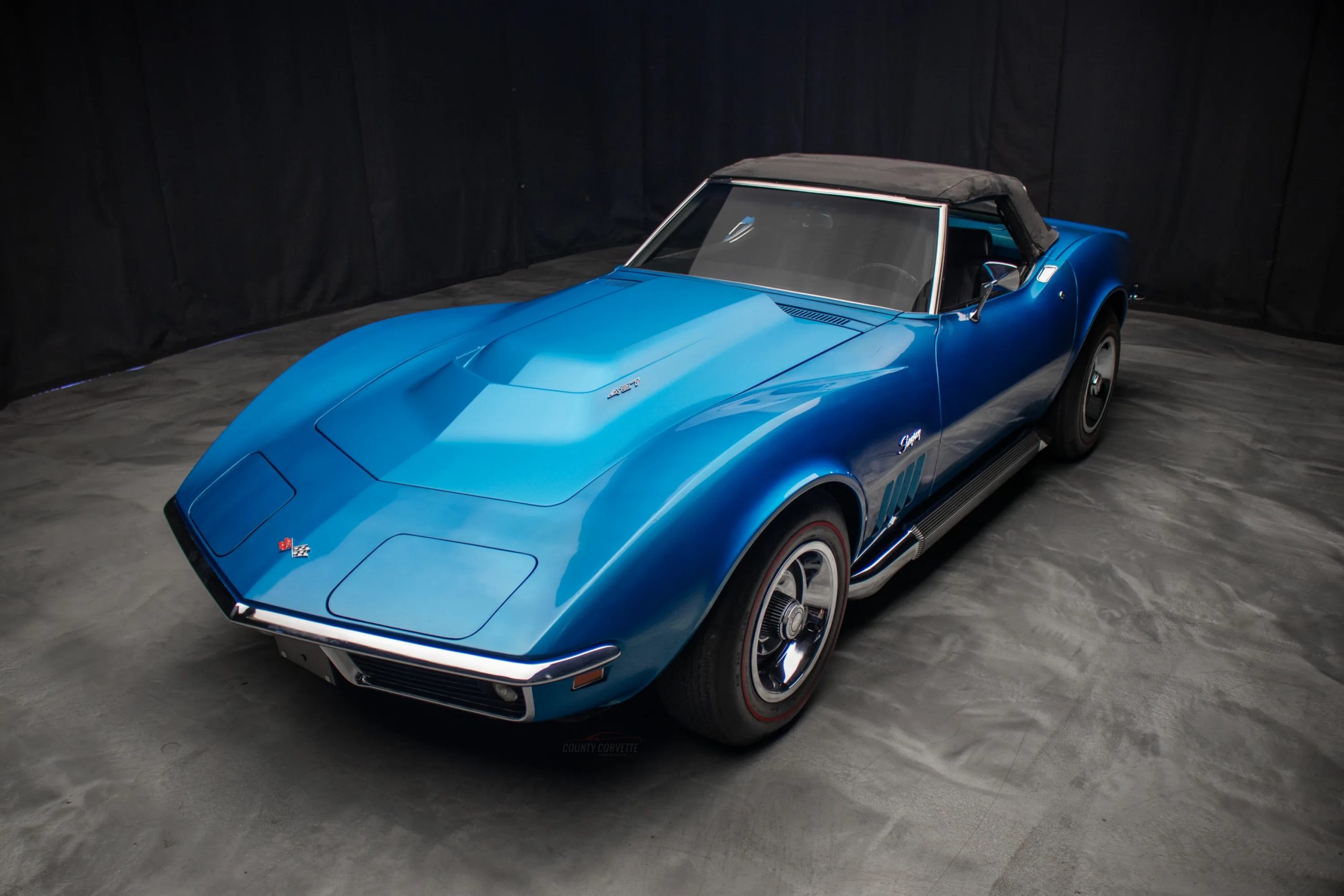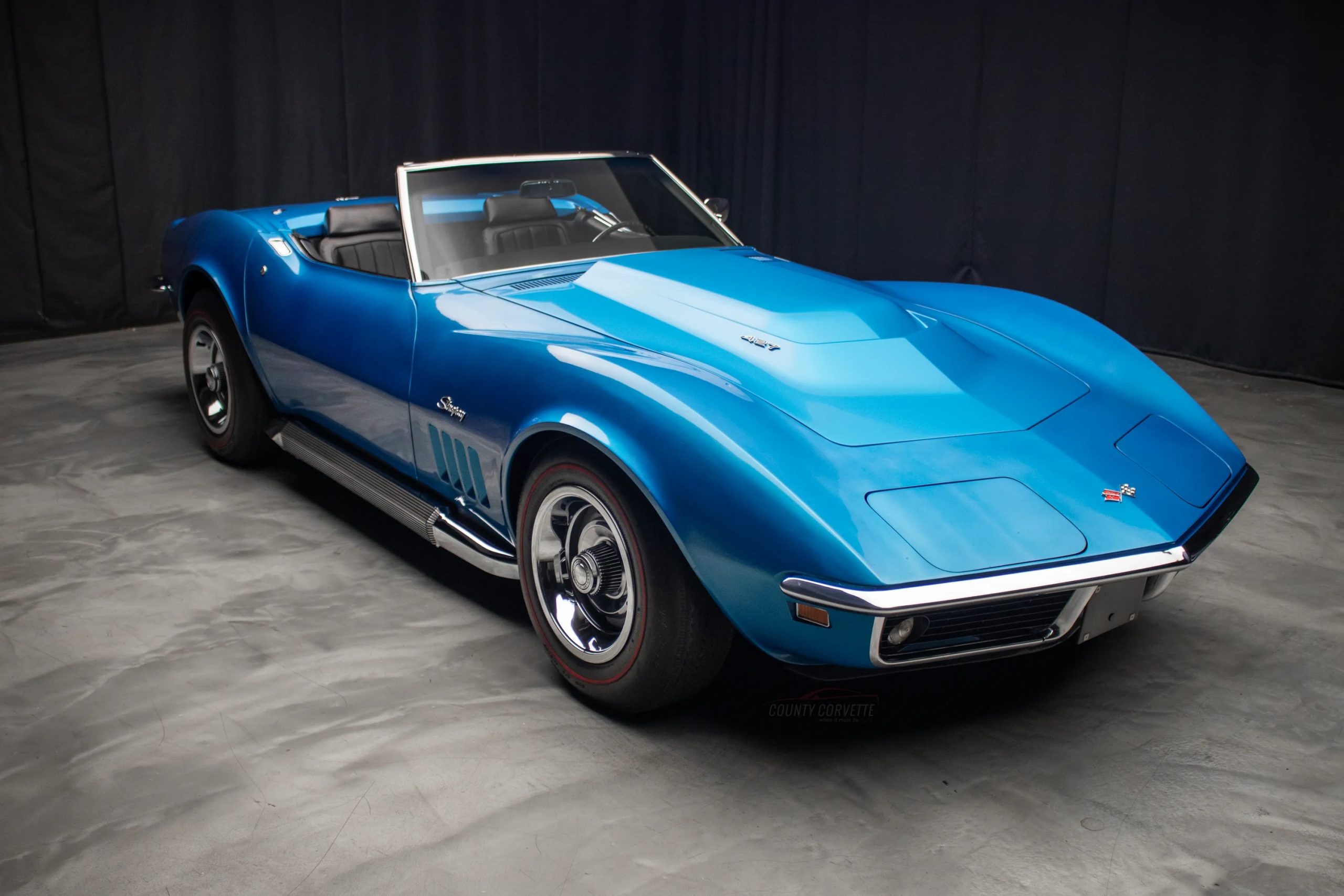 SBX Cars is offering a 1969 Corvette L88 convertible showing 19,886 miles. Finished in LeMans Blue with a Black vinyl interior, this unrestored example is presented by County Corvette with documentation, a window sticker, a tank sheet, authentication letters, and a clear title. It is one of 116 L88s produced for 1969.