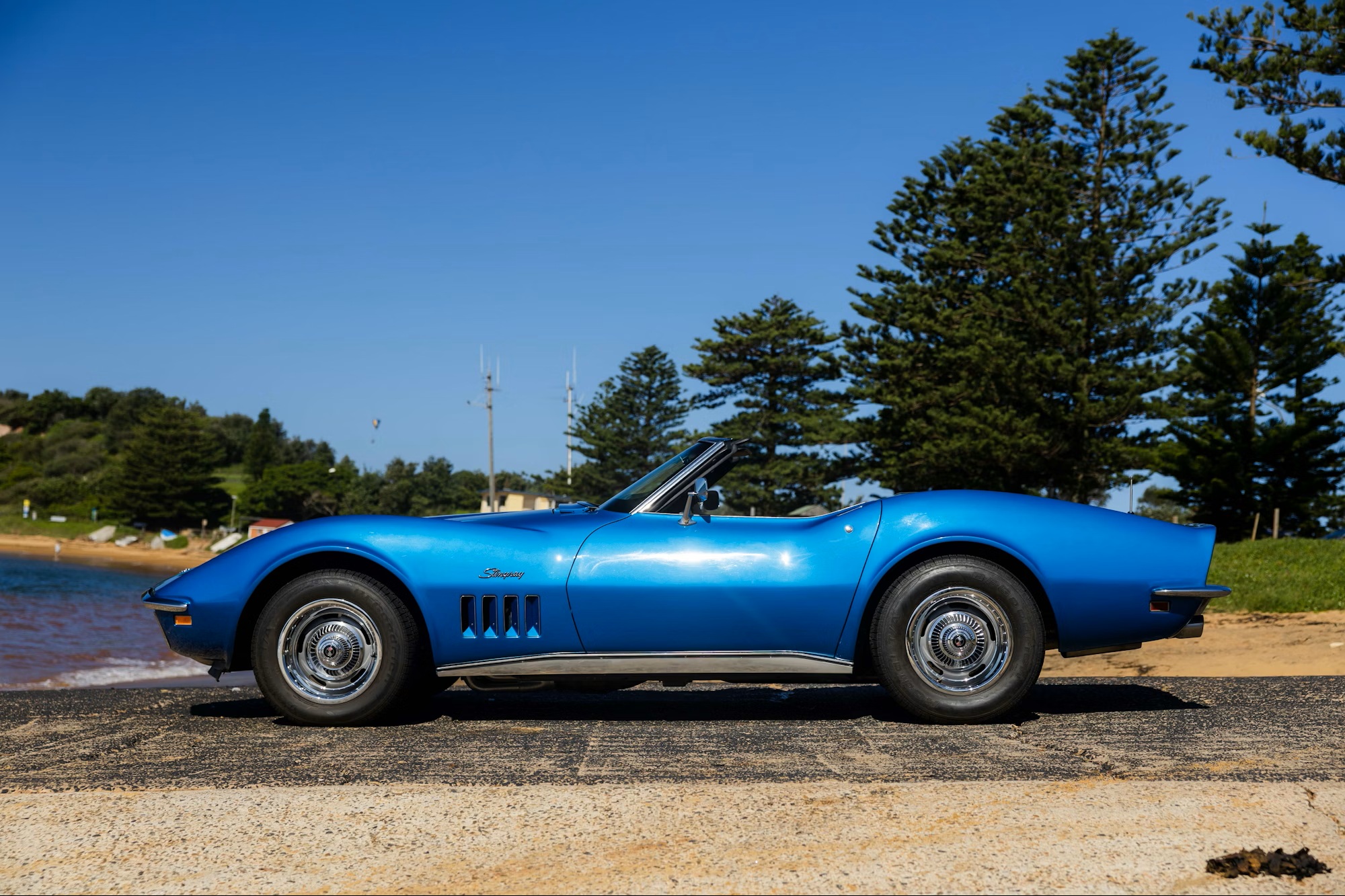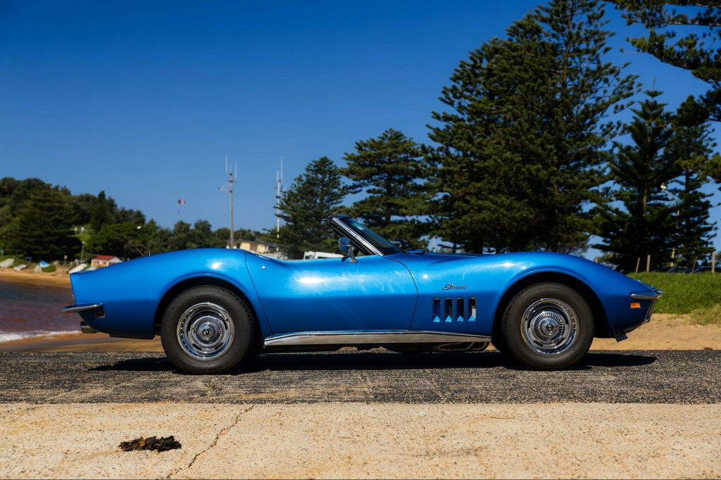 Now listed on Collecting Cars, this eye-catching Chevrolet Corvette Stingray convertible has been transformed into a thoroughly modernized American roadster through an extensive restomod build. Beneath the bonnet sits a tuned 6.0-liter LS2 V8, producing around 300 horsepower at the rear wheels, paired with a six-speed T56 Magnum manual transmission.