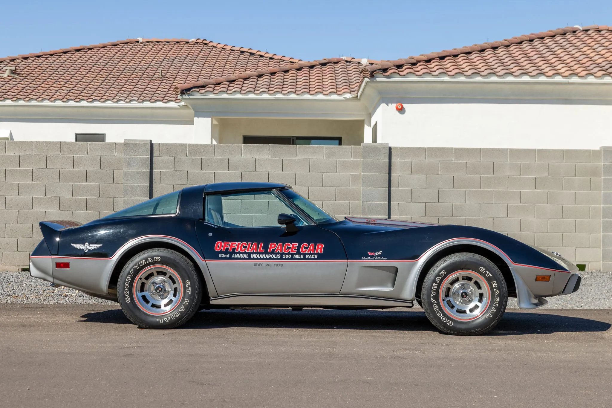 In 1978, Chevrolet celebrated the Corvette’s 25th anniversary with a refreshed third-generation model. The update included a new fastback-style all-glass rear window, a redesigned interior, and several special editions—most notably, a limited-run Indy 500 Pace Car version.