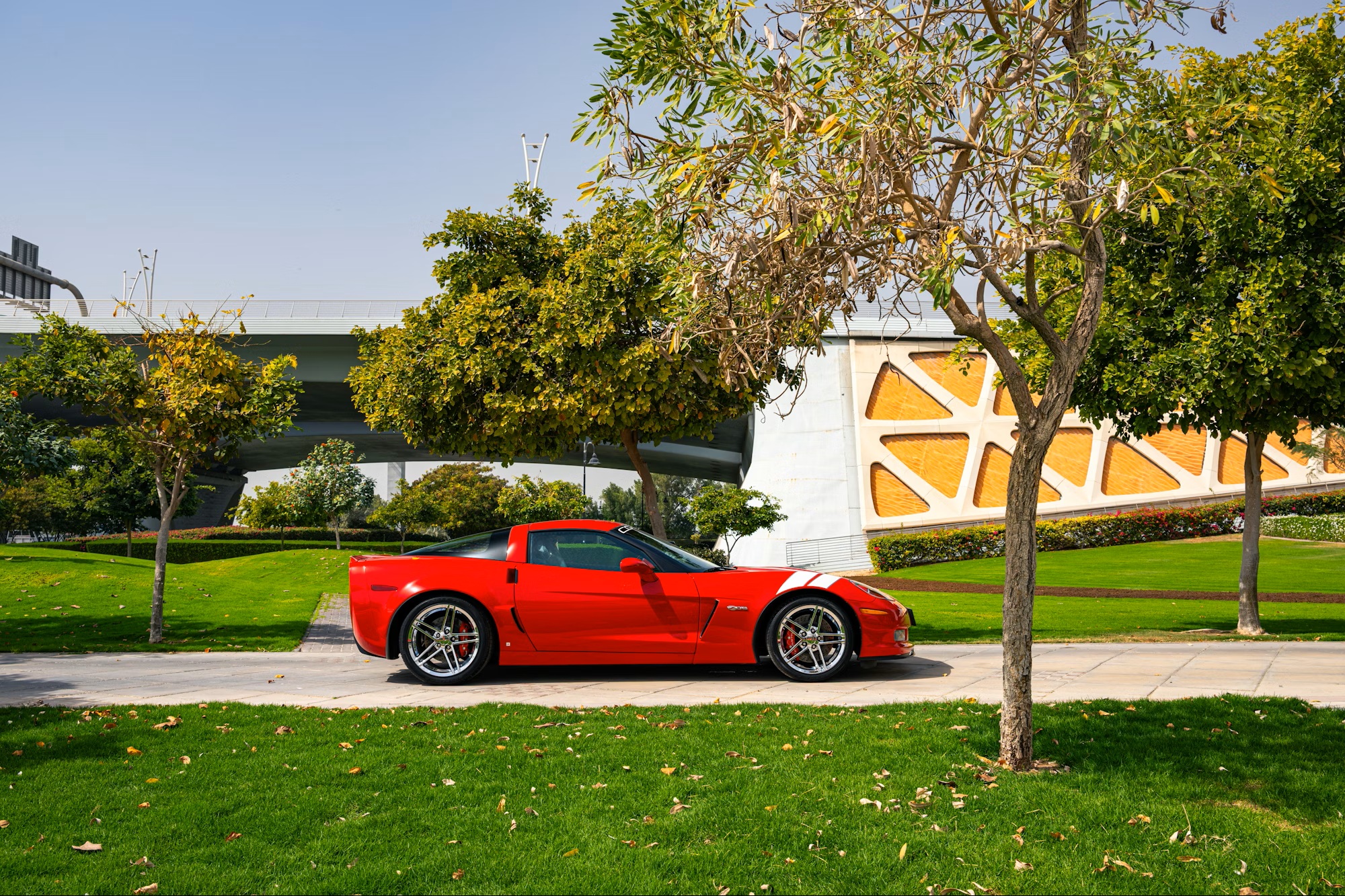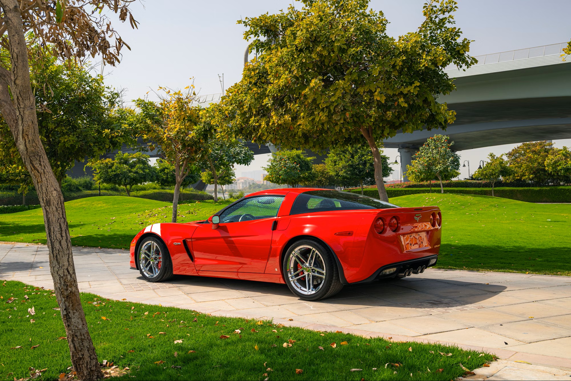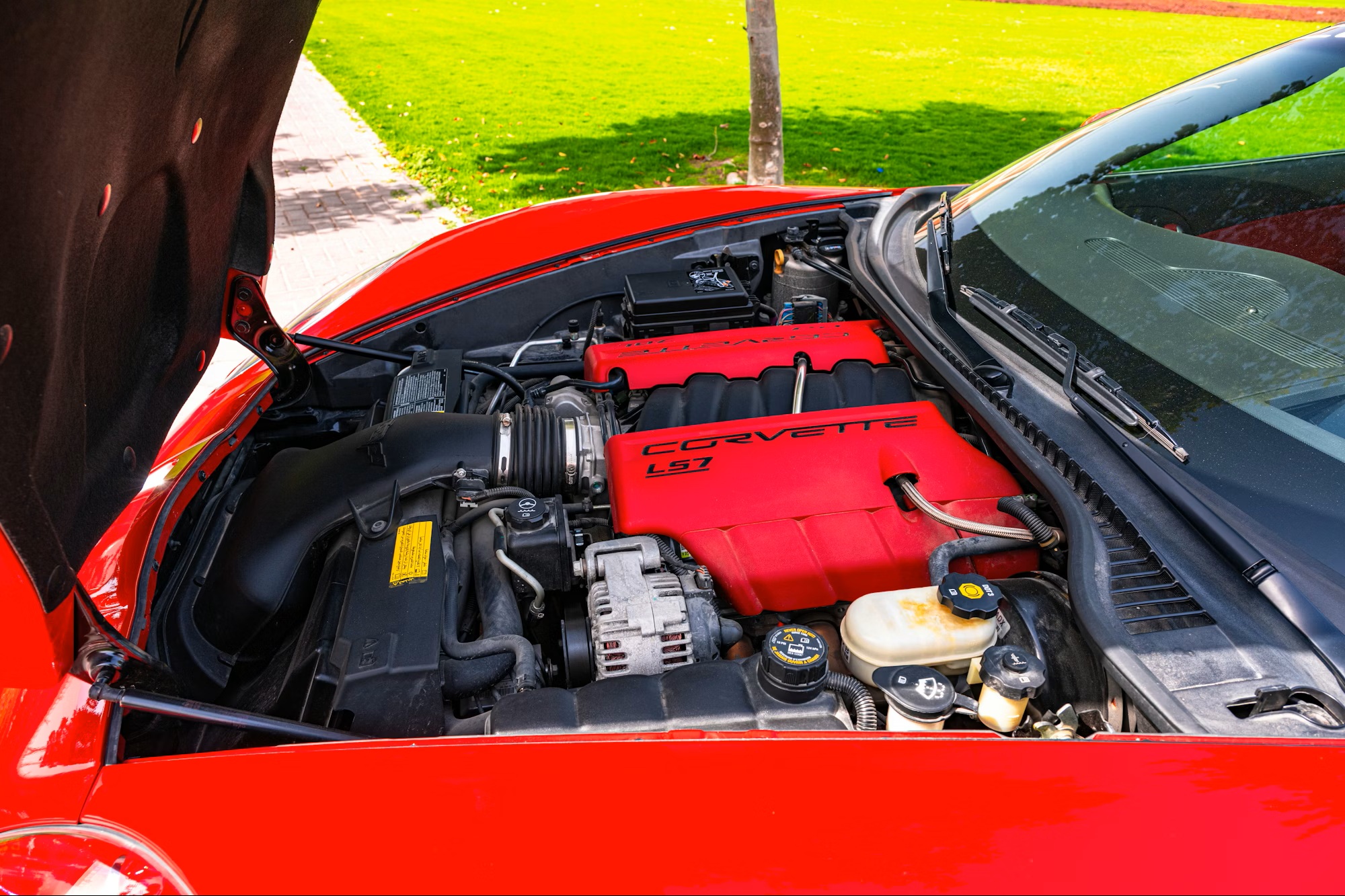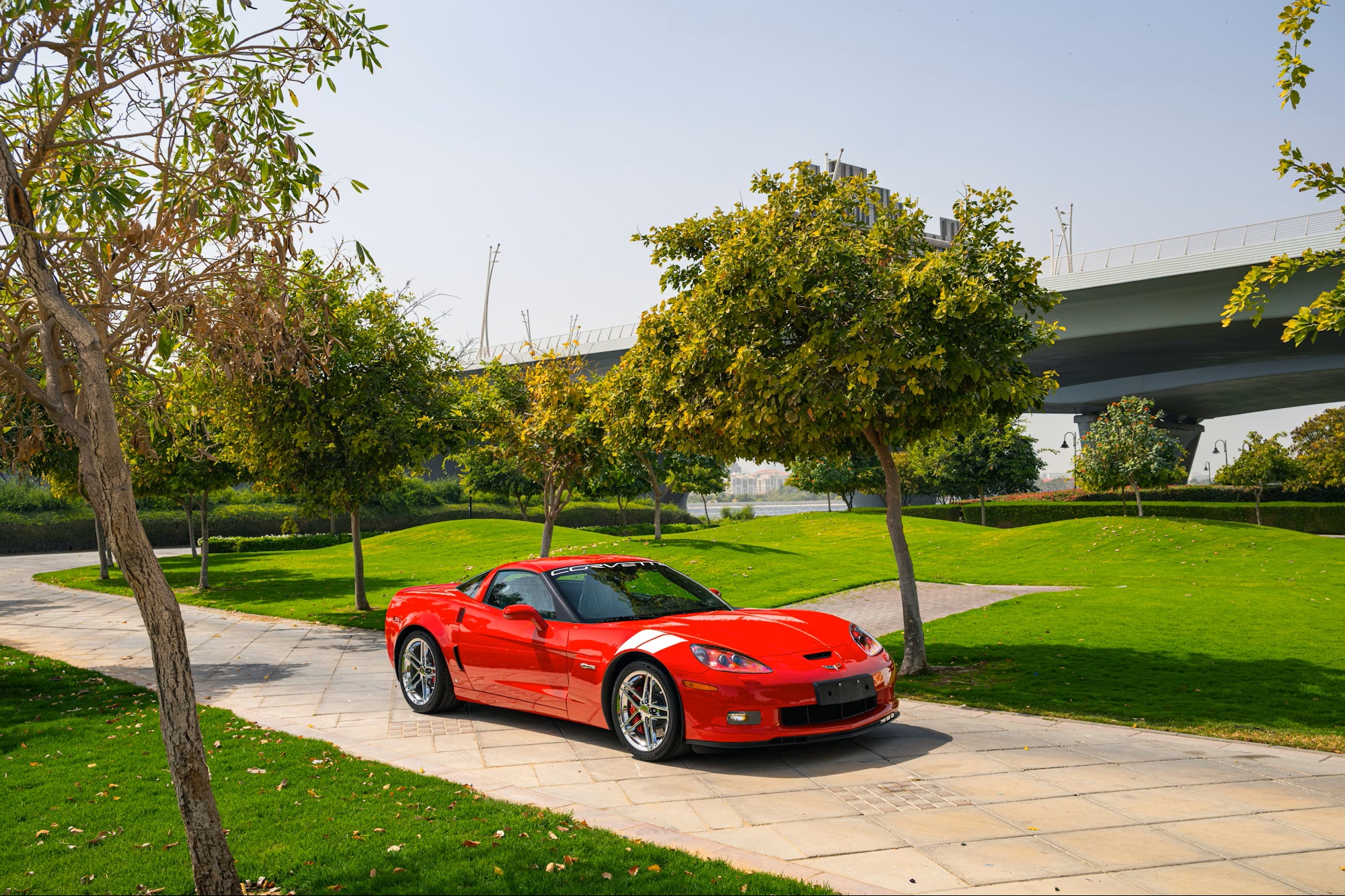 Under the hood is a naturally aspirated 7.0-liter LS7 V8 producing 505 horsepower, paired with a six-speed manual transmission and a limited-slip differential that sends power to the rear wheels. The car was originally delivered in the United States and has since been imported to the United Arab Emirates.