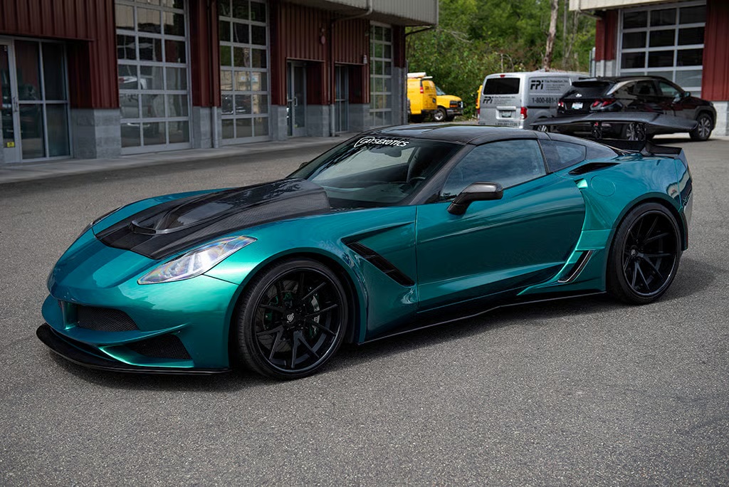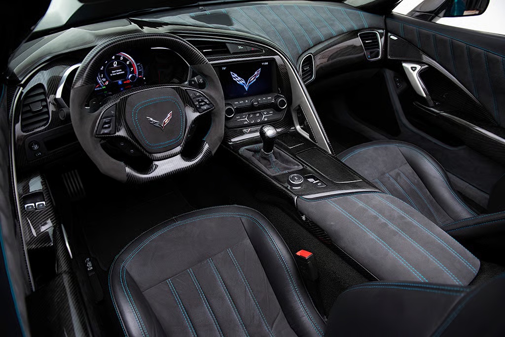 The car is equipped with a LT1 6.2-liter V8 that has been fitted with a Vortech V-3 supercharger along with Callies I-beam rods, a four-inch crankshaft, Mahle pistons, larger fuel injectors, and an upgraded LT4 fuel system. Power is sent to the rear wheels through a seven-speed manual transmission, delivering a more engaging driving experience.