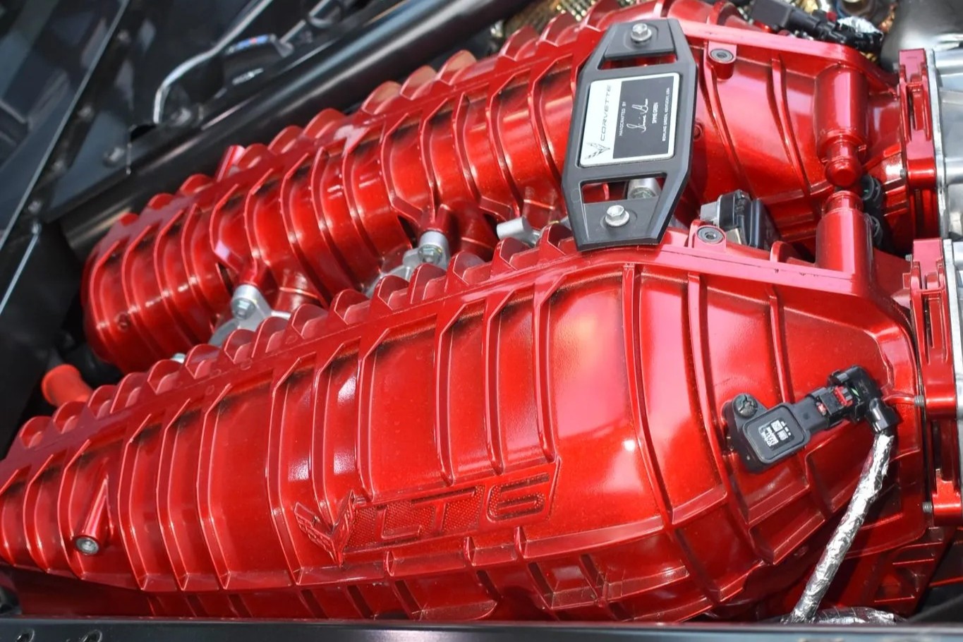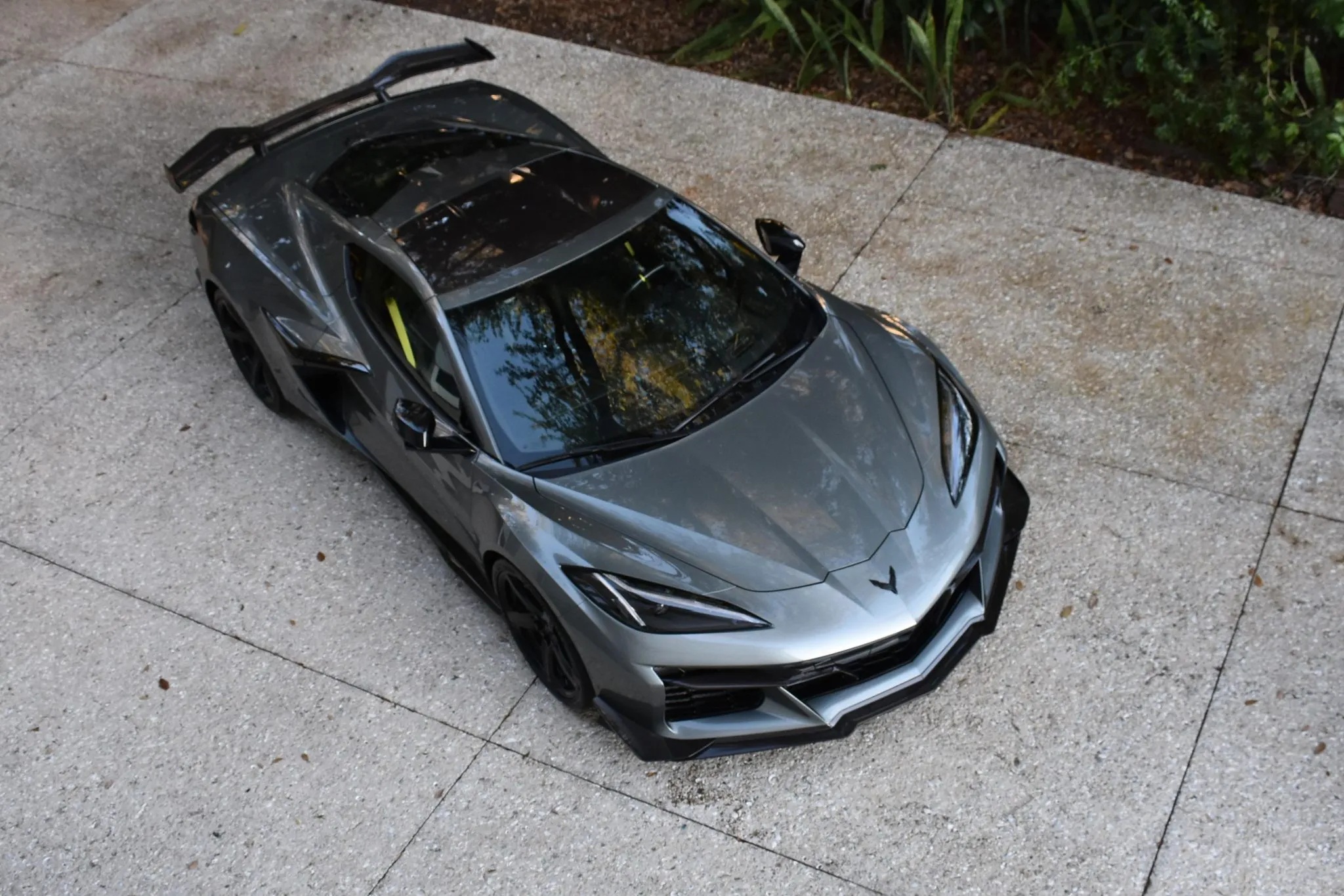 Finished in Hypersonic Gray Metallic, this example is further enhanced by an array of premium options and darkened accents. It rides on 20- and 21-inch carbon-fiber wheels—a costly upgrade—paired with black detailing throughout, including a tinted removable roof panel, Carbon Flash mirror caps, a composite front splitter, side rockers, and a Z06-specific rear spoiler.