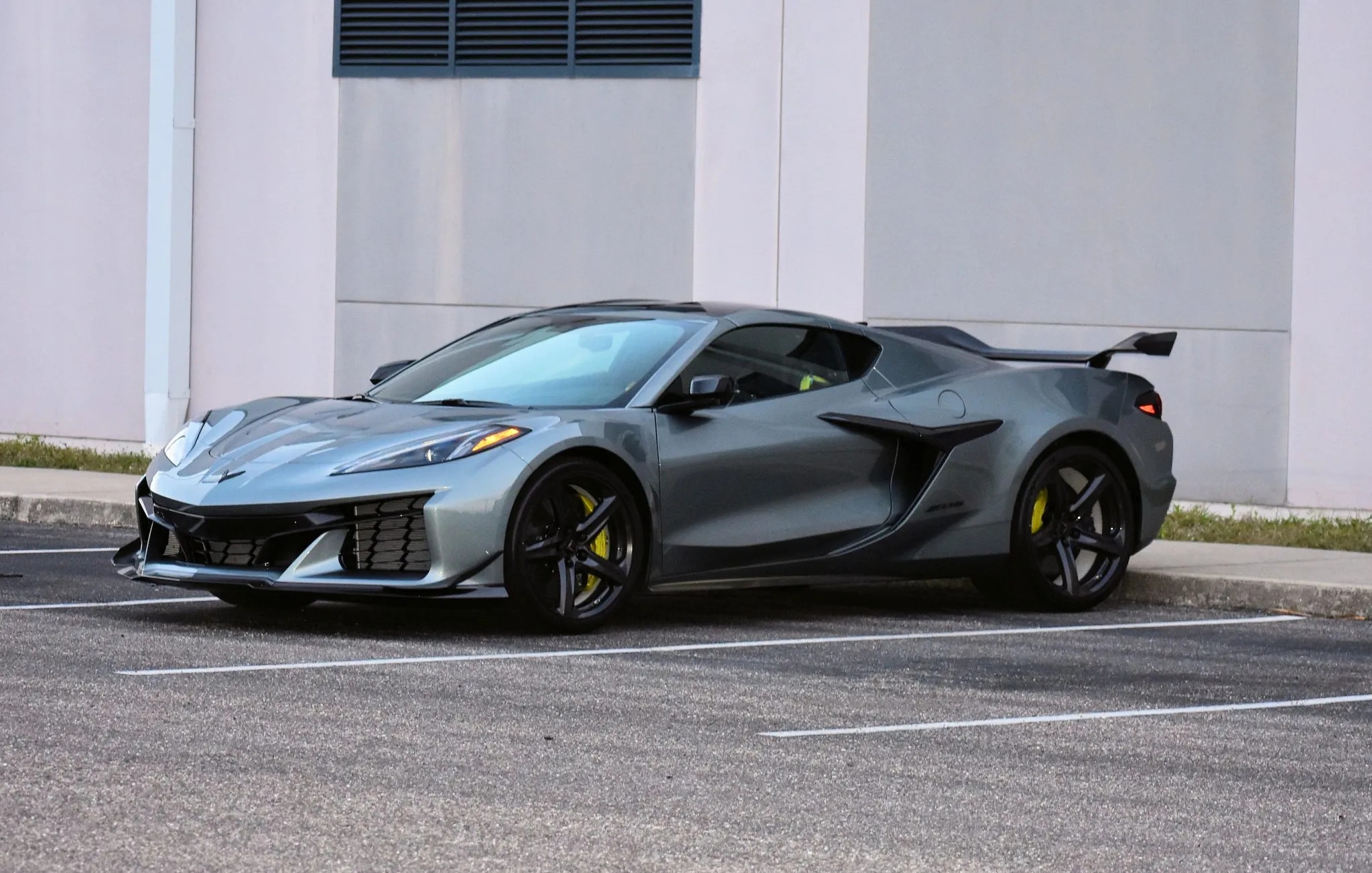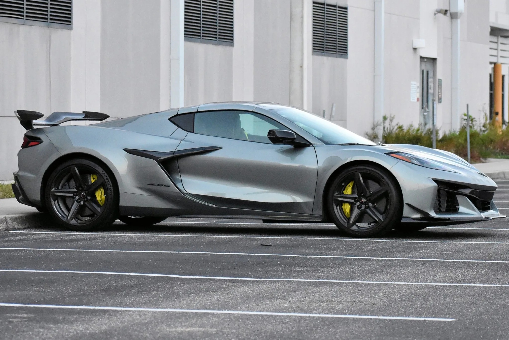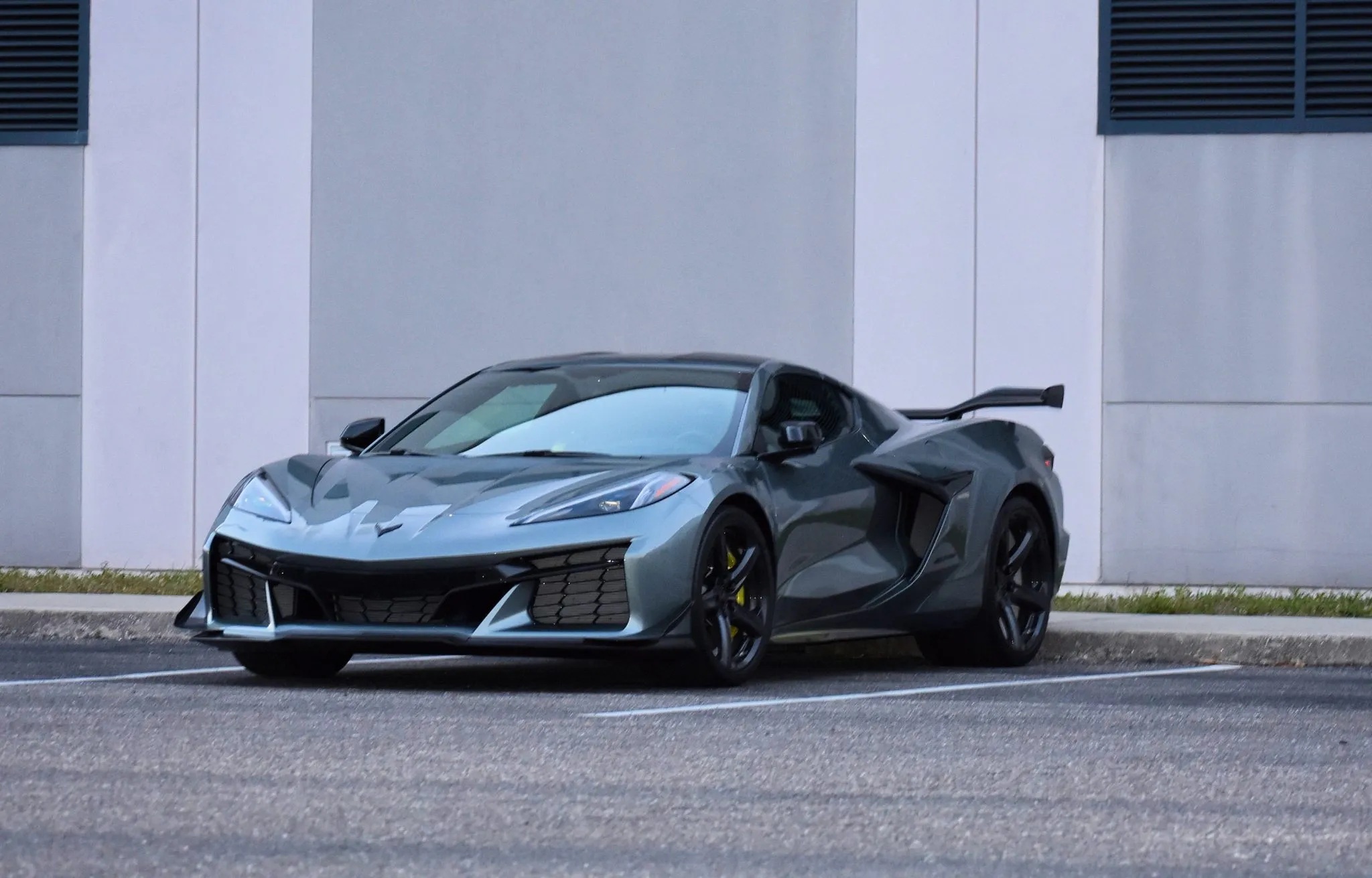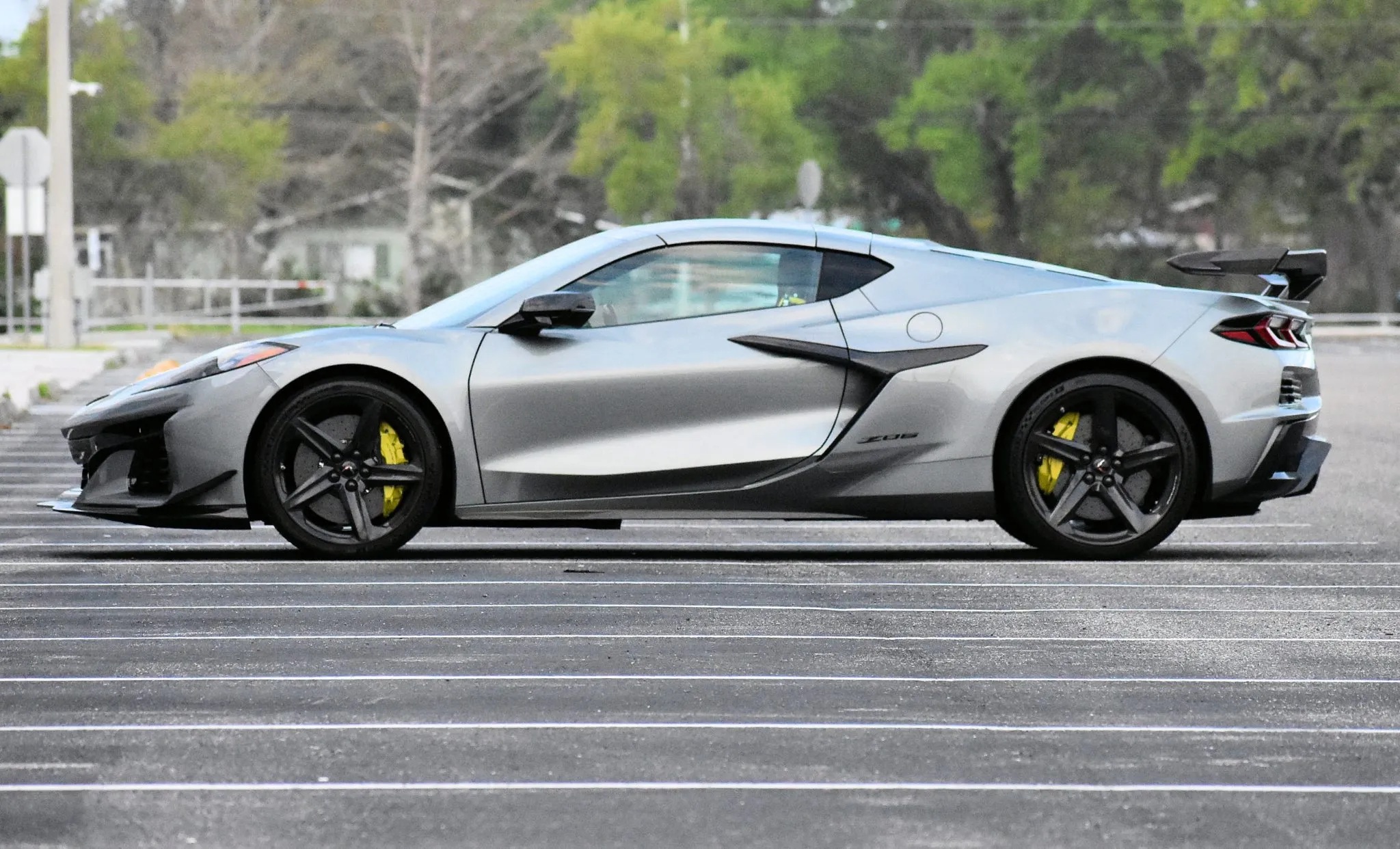 Additional touches include graphite-finished exhaust outlets and Dark Stealth crossed-flag emblems. Performance upgrades are equally serious, with a front-axle lift system featuring memory, plus the Z06 Ultimate Performance Package. This brings the Z07 suspension, Brembo carbon-ceramic brakes with yellow calipers, Magnetic Ride Control, and the Visible Carbon Fiber Aero Package, adding a prominent rear wing, dive planes, and aggressive ground effects.