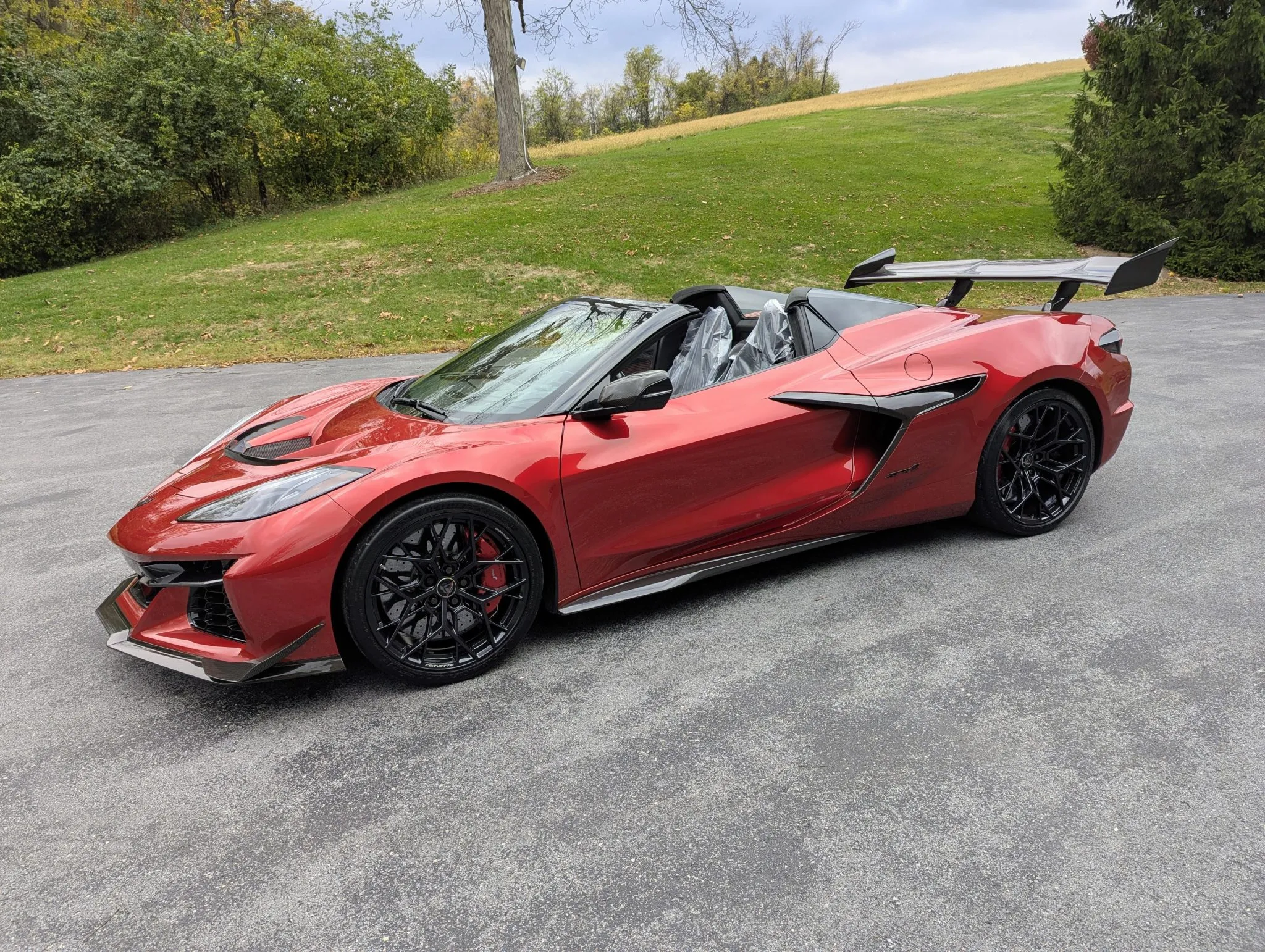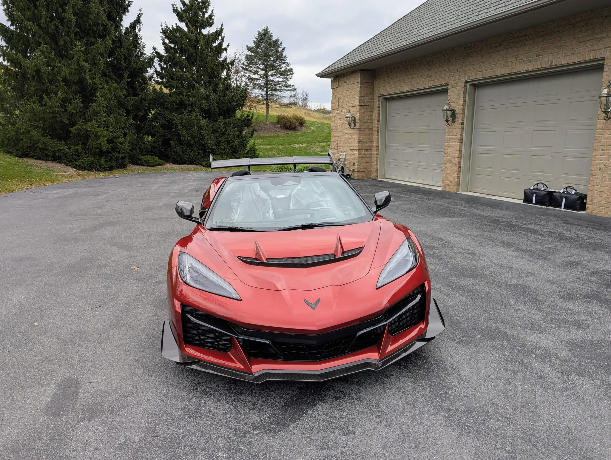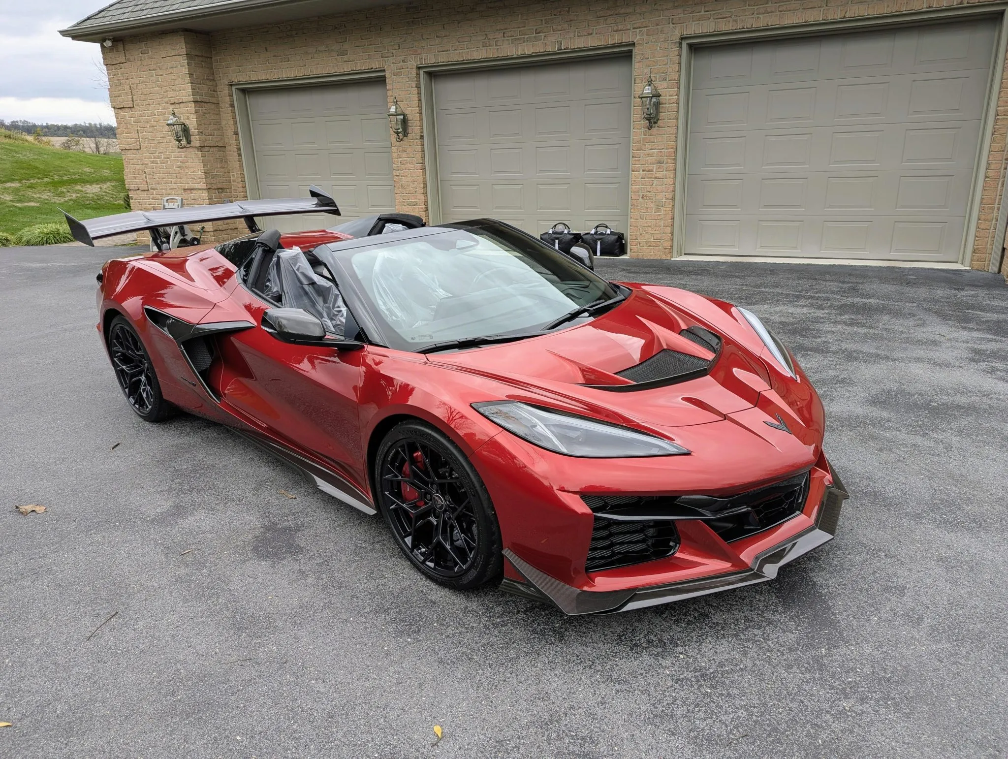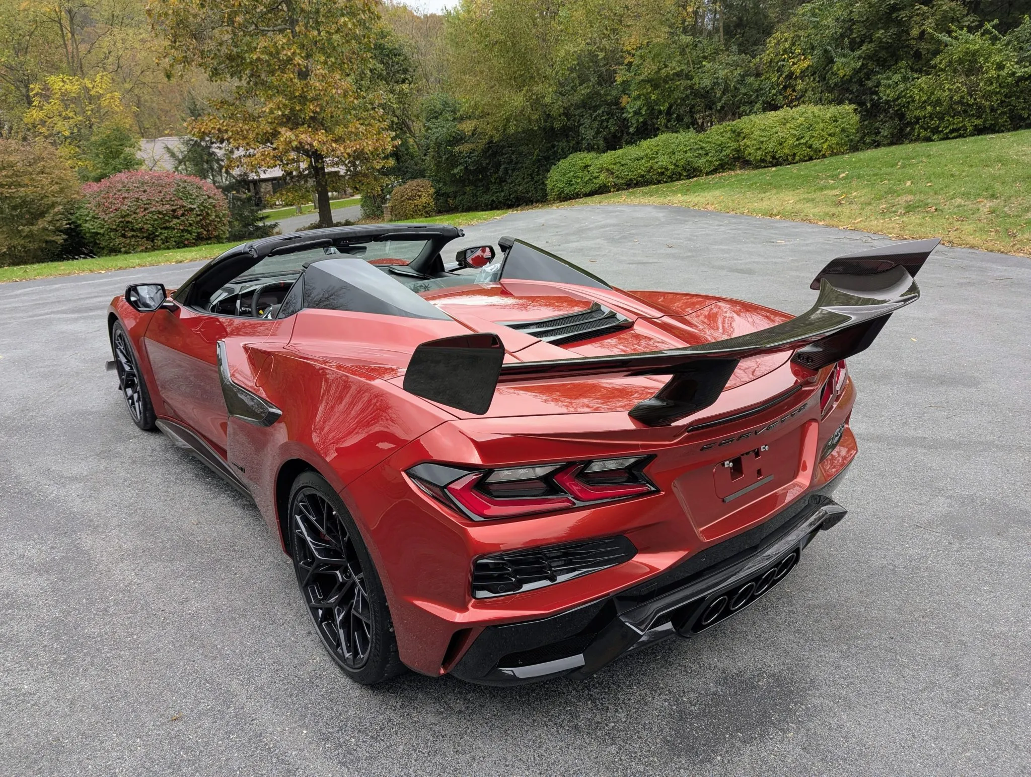 Introduced in July 2024, the C8 ZR1 is the most powerful Corvette ever built and the first production model to feature a twin-turbocharged engine. This particular example, listed on Bring a Trailer with just 18 miles, is finished in Red Mist Metallic Tintcoat and equipped with a power-retractable hardtop and enlarged rear fender scoops.