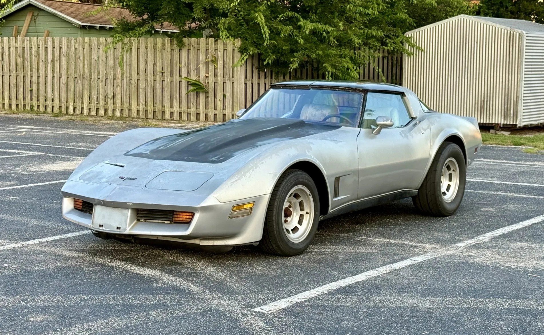 A family-passed 1980 Corvette that finally hit the open market after changing hands in 2025. Power comes from a 350ci V8 paired with a three-speed automatic, breathing through long-tube headers and glasspack mufflers. It wears silver-and-black paint, removable T-tops, 15-inch eight-slot wheels, and four-wheel disc brakes. Inside, it’s classic C3 survivor territory with failing upholstery, missing carpets, a metal-paneled console, and a non-functional speedo. This one is every bit the honest, rough-around-the-edges driver the pictures promise.