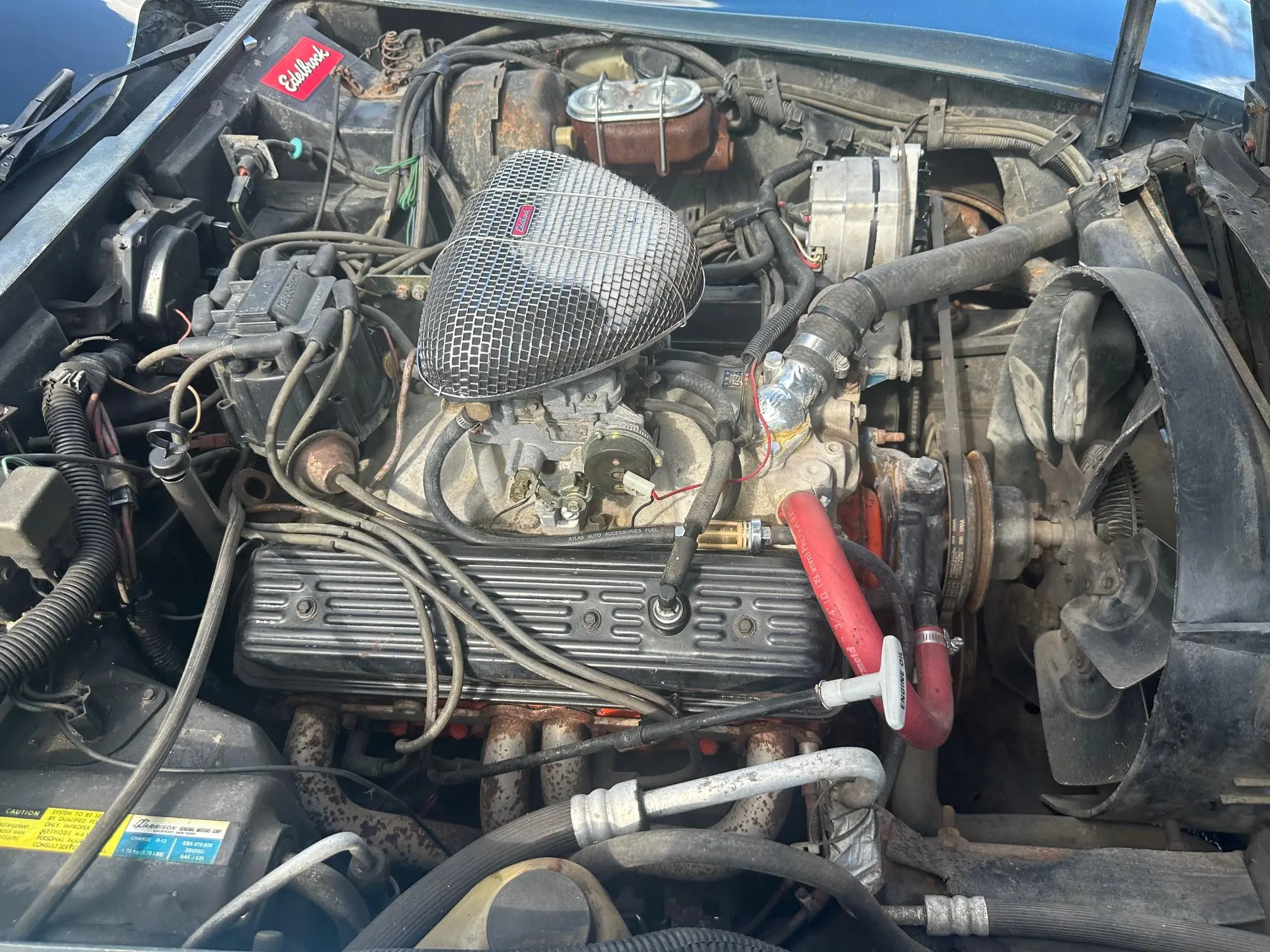 • Modified 350ci V8: Edelbrock carb, aluminum intake, aftermarket cam, ported heads
