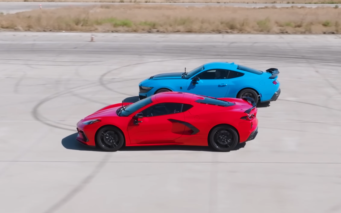 In the newest episode of Edmunds U-Drags race, we get to see a showdown between two American performance icons: a factory-fresh 2025 Chevrolet Corvette Stingray and a heavily modified 2024 Mustang Dark Horse. Edmunds’ signature U-Drags course—a quarter-mile sprint, a hard brake into a 180-degree turnaround, and a full-throttle return to the start line. A brutal test of acceleration, braking, grip, and composure.