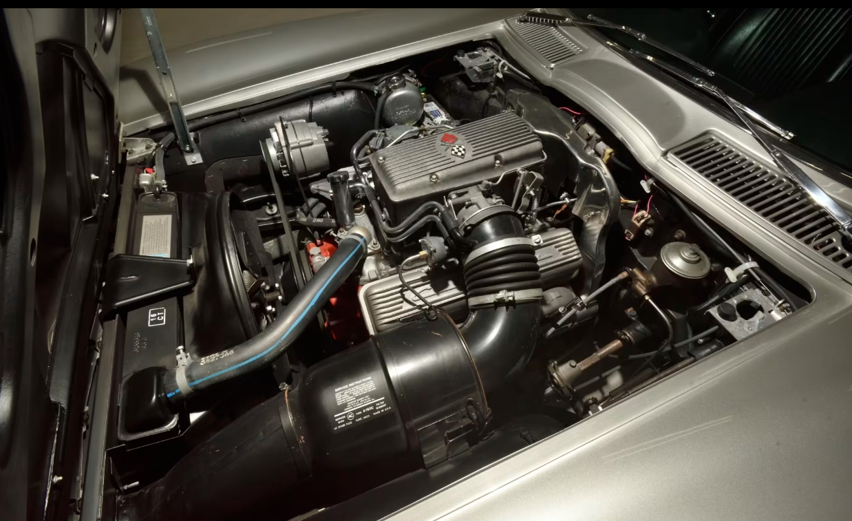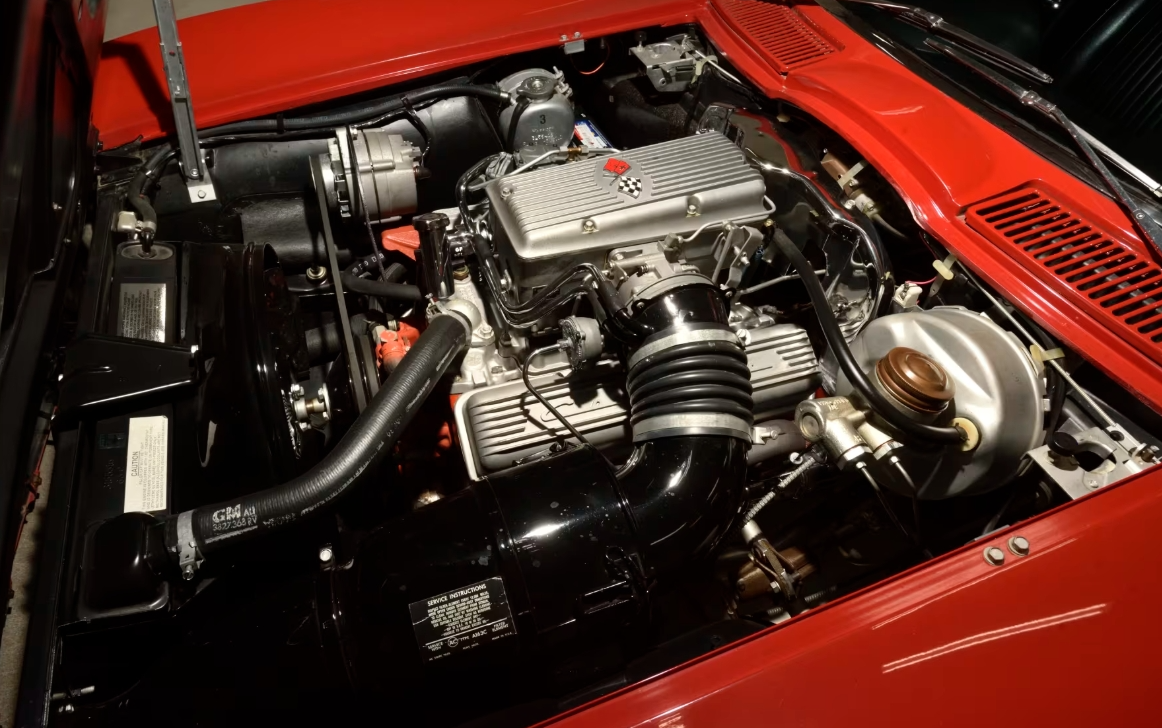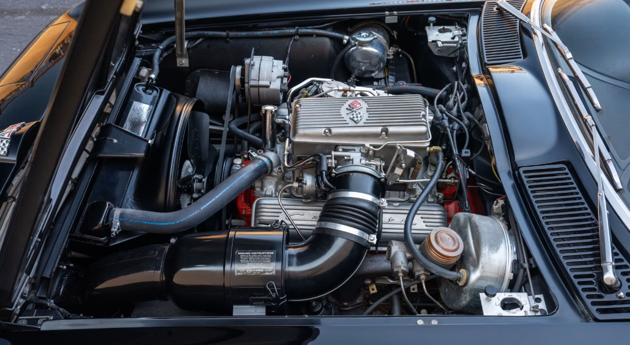 1963 was not just a redesign—it was a revolution. The C2 Sting Ray marked the first clean-sheet Corvette since the original, carrying over only its engine while everything beneath and above it changed. Zora Arkus-Duntov engineered an entirely new chassis, featuring a fully independent rear suspension that transformed ride quality, traction, and stability. Weight distribution shifted to a more balanced 48/52 percent, a meaningful improvement over the C1’s 53/47 split. Shorter wheelbase, revised track, and modern suspension geometry signaled that the Corvette was no longer just America’s sports car—it was a world-class one. And visually, it arrived with a statement down the middle.