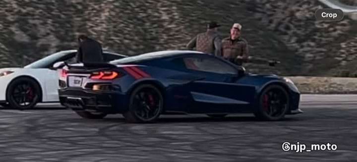 Then came the moment that pushed everything over the edge. A newly circulating spy video, filmed on California’s legendary Angeles Crest Highway, appears to capture a defining chapter in Corvette development. The footage shows a professional convoy escorting two C8 Corvettes—one finished in white, the other wearing a deep, dramatic blue. Camera vehicles and support trucks surround them, the unmistakable footprint of an official photo or video shoot. This wasn’t casual testing. This was staged, deliberate, and intentional. More importantly, the blue Corvette displays the precise visual cues long associated with the rumored 2027 Grand Sport, sending the internet into a frenzy almost instantly.