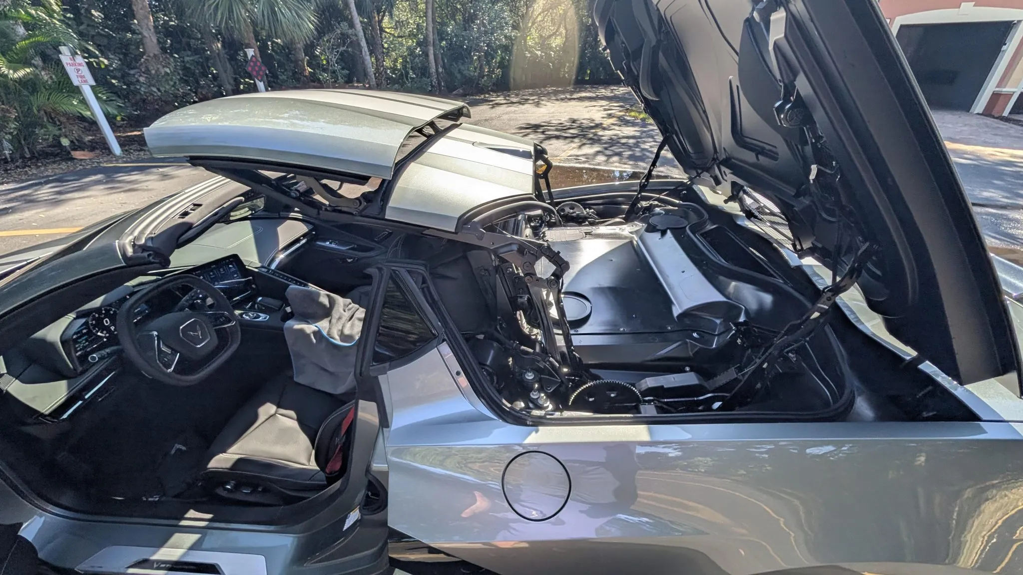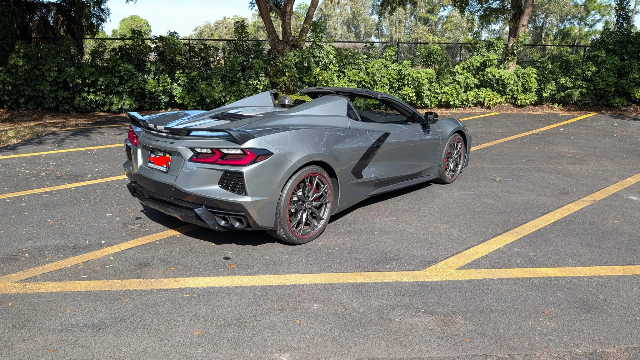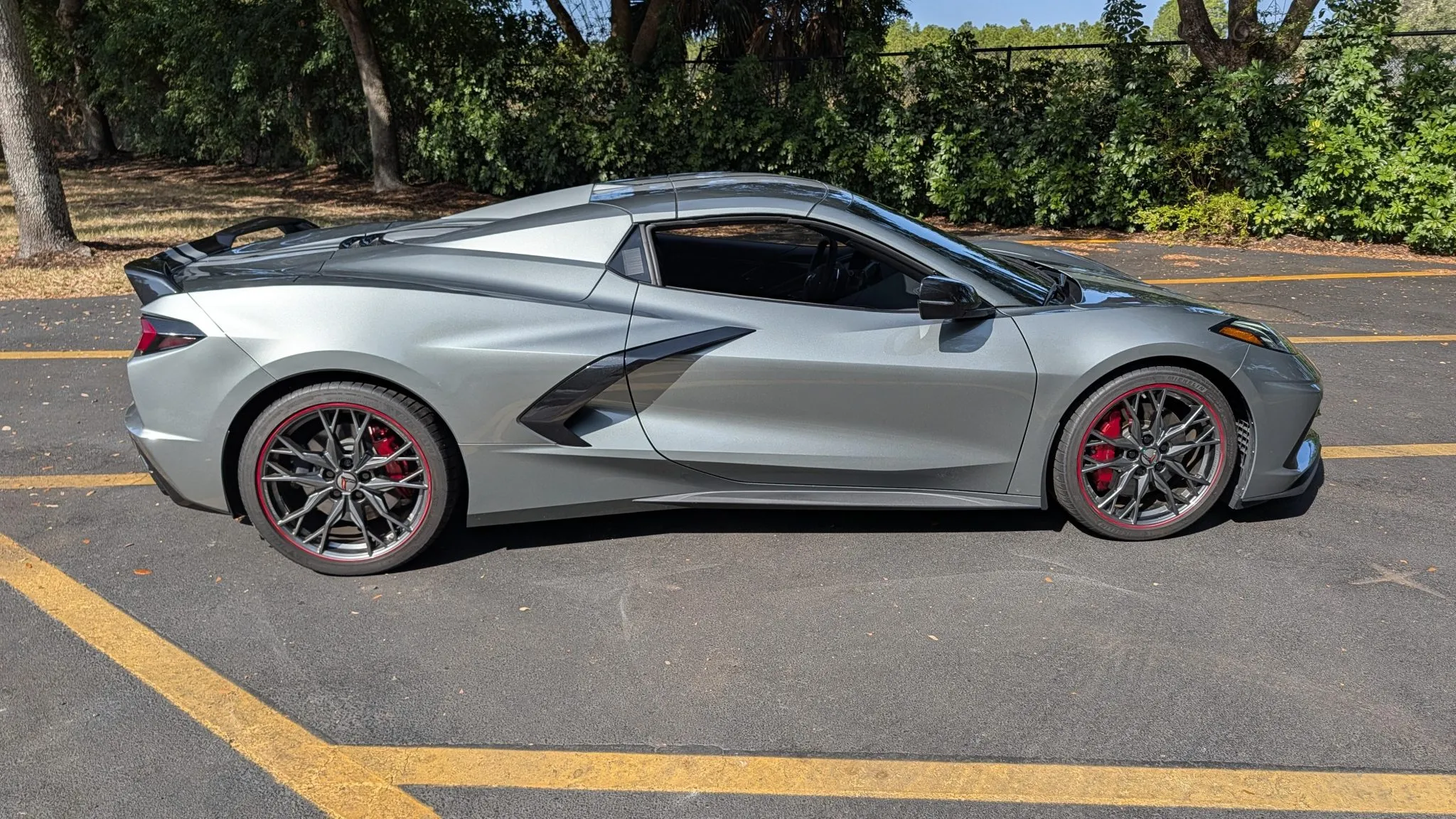 “This 2024 Chevrolet Corvette Stingray 2LT convertible is powered by a 6.2-liter LT2 V8 paired with an eight-speed dual-clutch automatic transaxle and is finished in Hypersonic Gray Metallic over Jet Black leather. It was optioned with the Z51 Performance Package and is further equipped with a power-retractable hardtop, a rear spoiler, a limited-slip differential, a front-axle lift system, and staggered-diameter wheels as well as a heated steering wheel, heated and ventilated seats, a Bose sound system, navigation, and keyless entry. The car was acquired new by the seller and has 5k miles. This C8 Stingray is now offered with a window sticker, service records, a clean Carfax report, and a Florida title.”