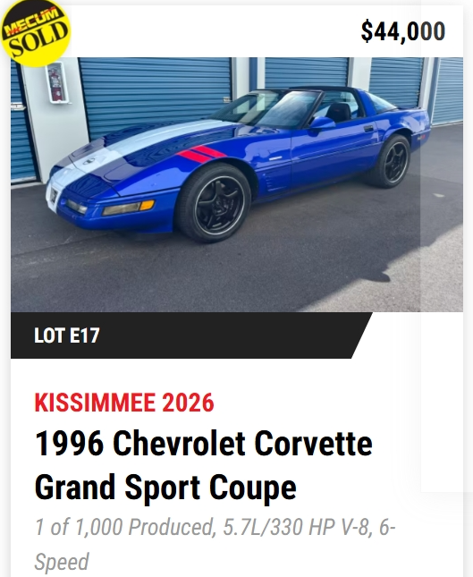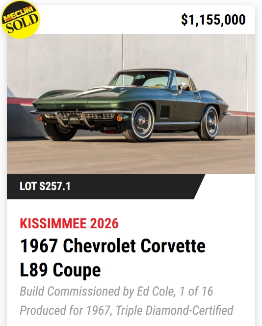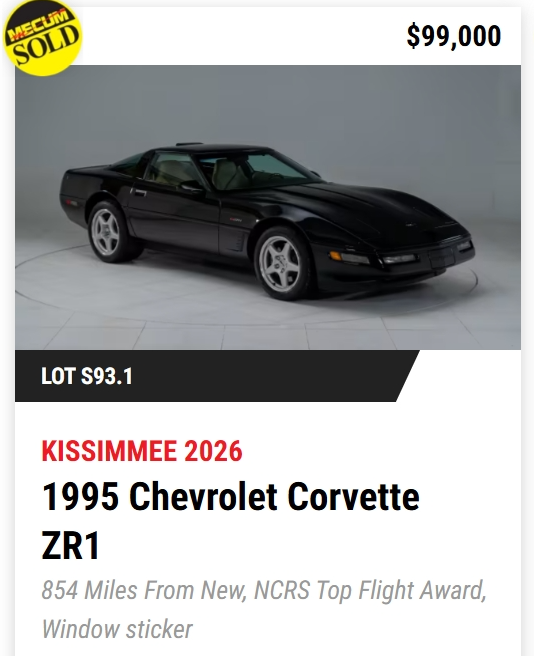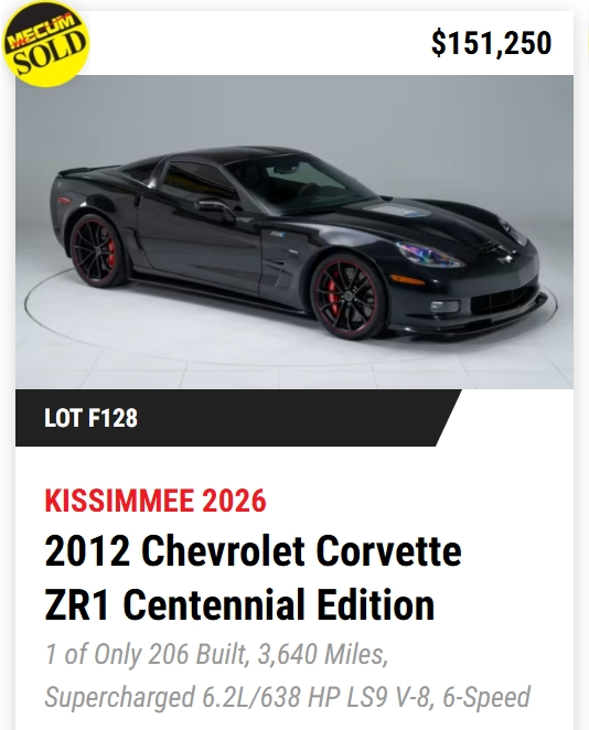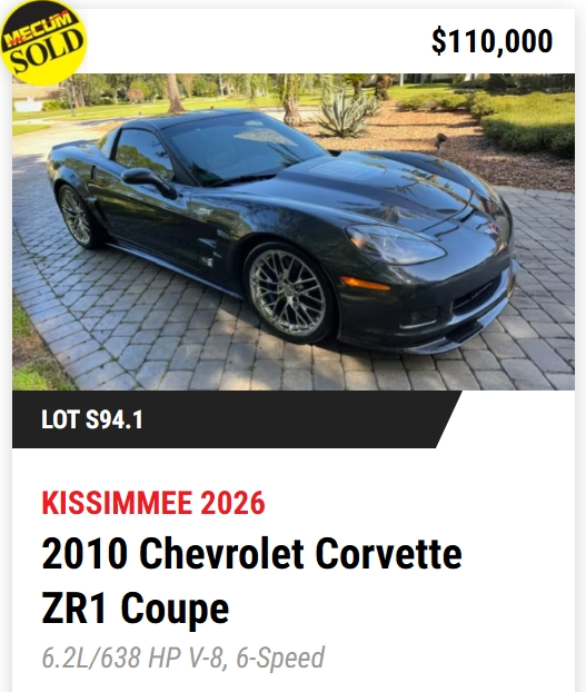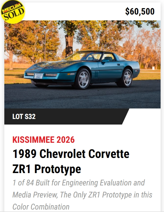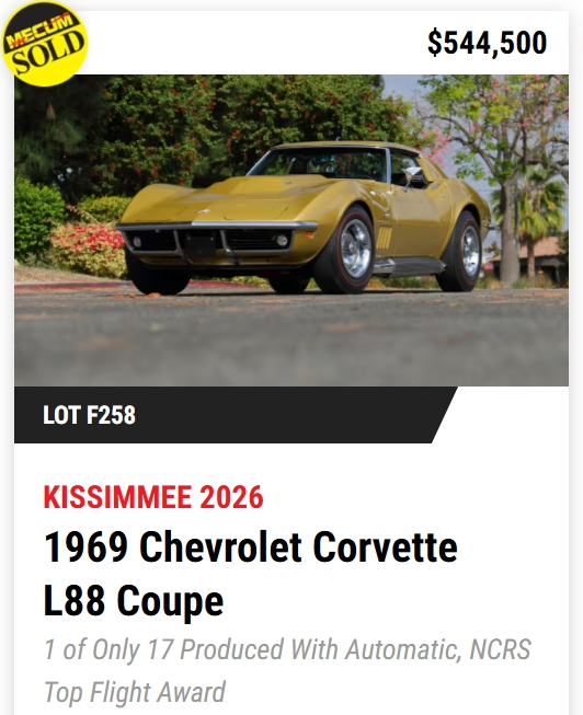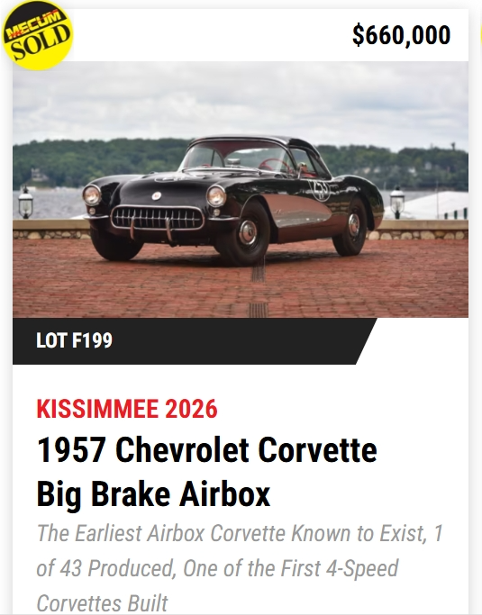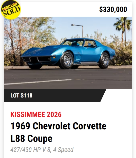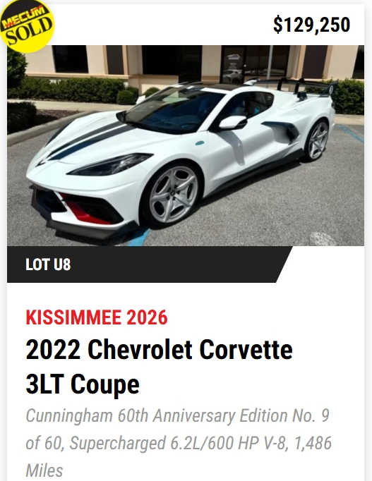- TODAY, Mecum Kissimmee 2026: 401 Corvettes offered with 293 Vettes off to new owners! (73%)