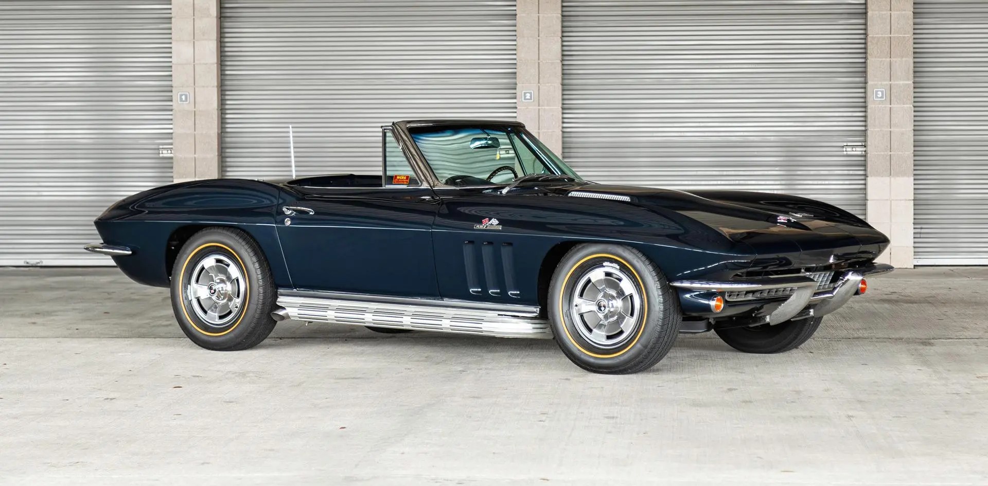 “This 1966 Chevrolet Corvette convertible was refurbished in 1990 while part of the collection of Otis Chandler, and it was later relocated to Washington and awarded three NCRS awards in 2001 and 2002, including a Duntov Mark of Excellence accolade. Al Grenning of Classic Car Affirmation Service issued certificates for the trim tag and engine pad in 2015, while a report from Sinor Prestige Automobiles evaluating the car’s identification numbers and history was obtained in November 2025. Specified from the factory in Laguna Blue over blue vinyl upholstery, the car is powered by a 427ci L72 V8 that is backed by a four-speed manual transmission and a Positraction rear end. Additional details include a white soft top, 15″ steel wheels, four-wheel disc brakes, a cabin heater, an AM/FM radio, and retractable headlights. This C2 is now offered by the selling dealer with manufacturer’s literature, a Protect-o-Plate, service records, NCRS awards, Classic Car Affirmation Service documents, refurbishment photos, and a clean New Jersey title.”