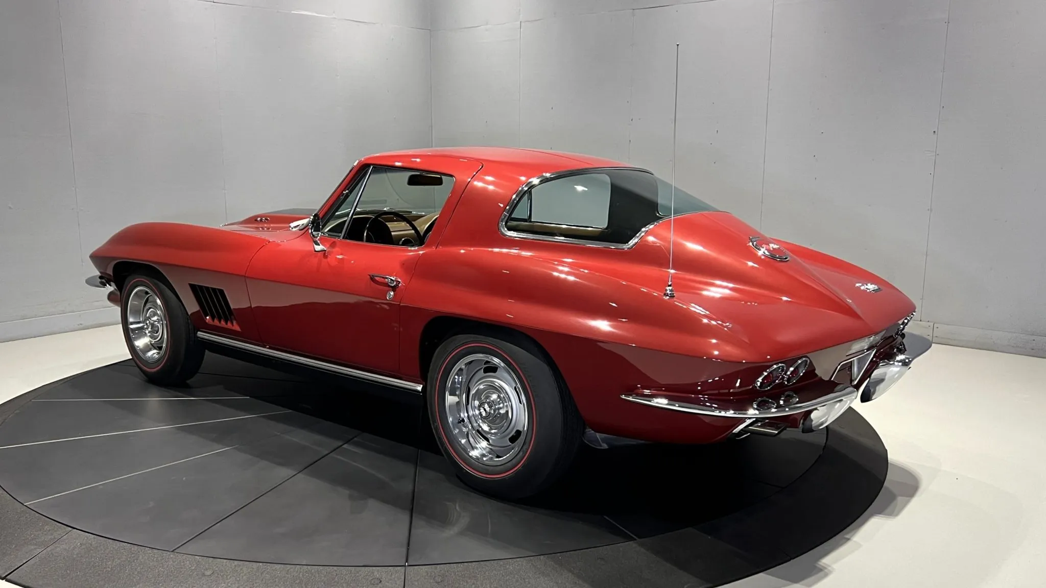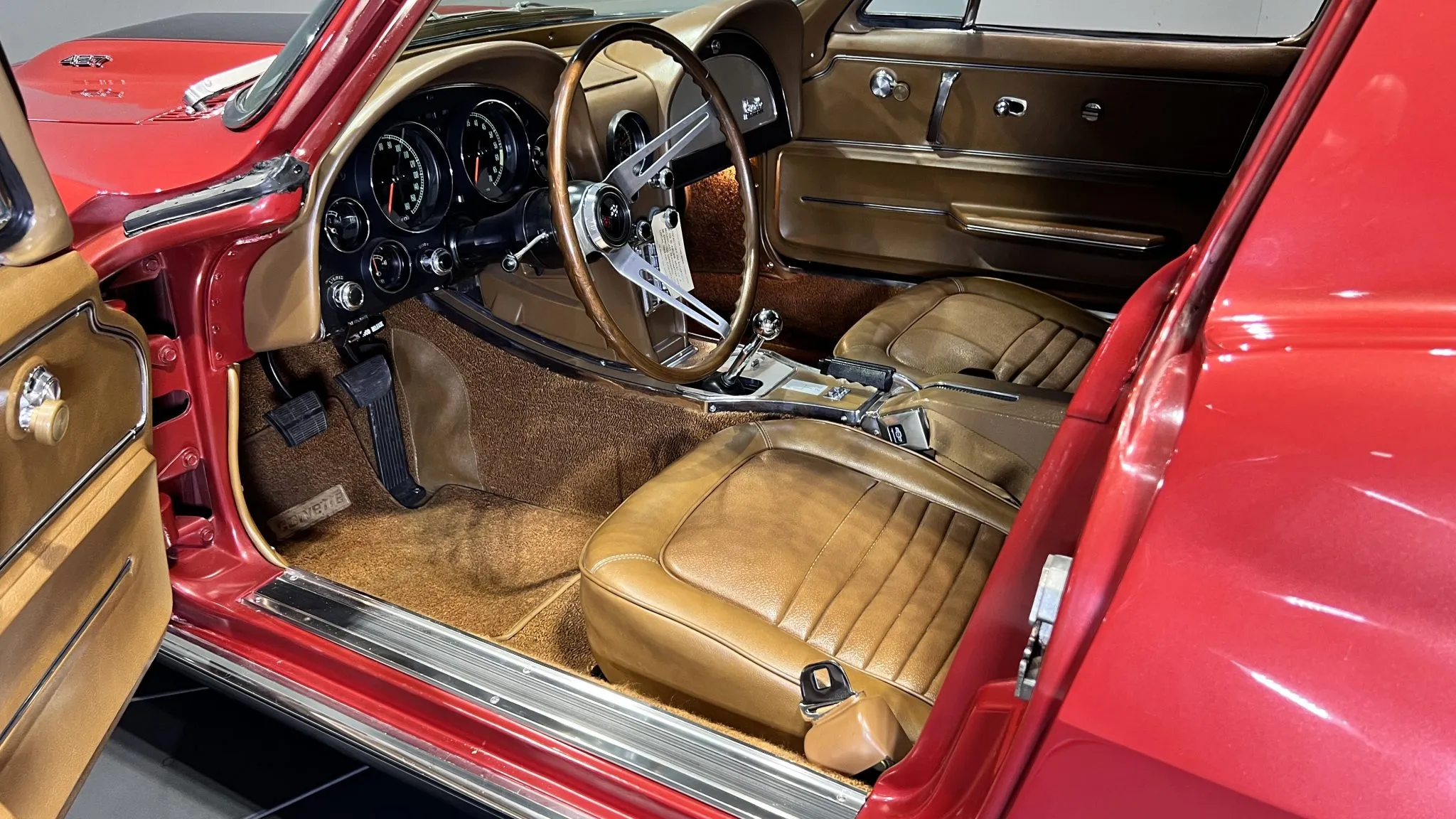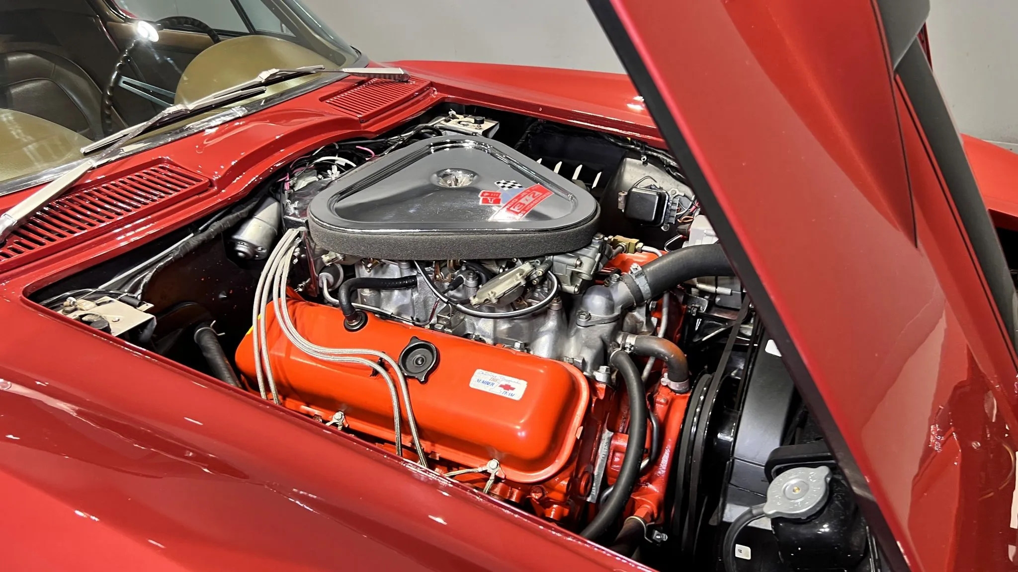 “This 1967 Chevrolet Corvette coupe is said to have received a six-year cosmetic and mechanical refurbishment completed in 2006, which involved removing the body from the frame, repainting the exterior in maroon, refreshing the interior, and overhauling the 427ci L68 V8. The car subsequently earned NCRS Top Flight and Bloomington Gold recognition. It is equipped with a four-speed manual transmission, 15″ Rally wheels, four-wheel disc brakes, chrome bumpers, and retractable headlights, while the interior features power windows, a cabin heater, an AM/FM radio, and saddle vinyl upholstery. This C2 was purchased by the seller in 2022 and is now offered at no reserve with a tank sticker, the owner’s manual, NCRS and Bloomington Gold awards, and a clean Wisconsin title in the seller’s name.”