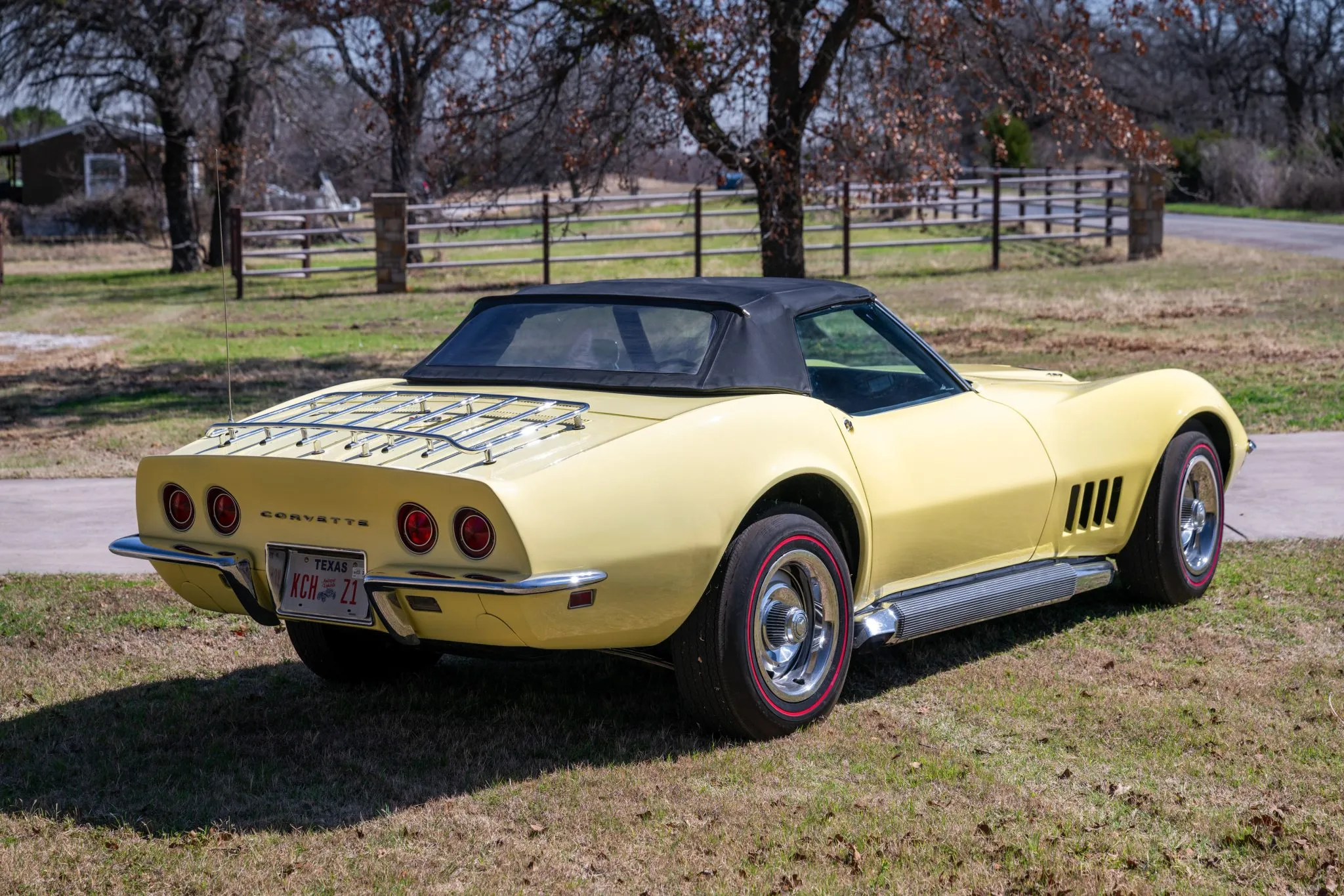 “This 1968 Chevrolet Corvette convertible was acquired by the seller in 2005 and subsequently refurbished. It is powered by a 427ci V8 topped with three two-barrel carburetors, and it is paired with a four-speed manual transmission. The car is refinished in yellow over black and is equipped with a black convertible soft top, a rear cargo rack, retractable headlights, 15″ Rally wheels, four-wheel disc brakes, power steering, side-exit exhaust, an AM/FM radio, and air conditioning. This C3 convertible is now offered with spare parts, a car cover, and a clean Texas title in the seller’s name.”