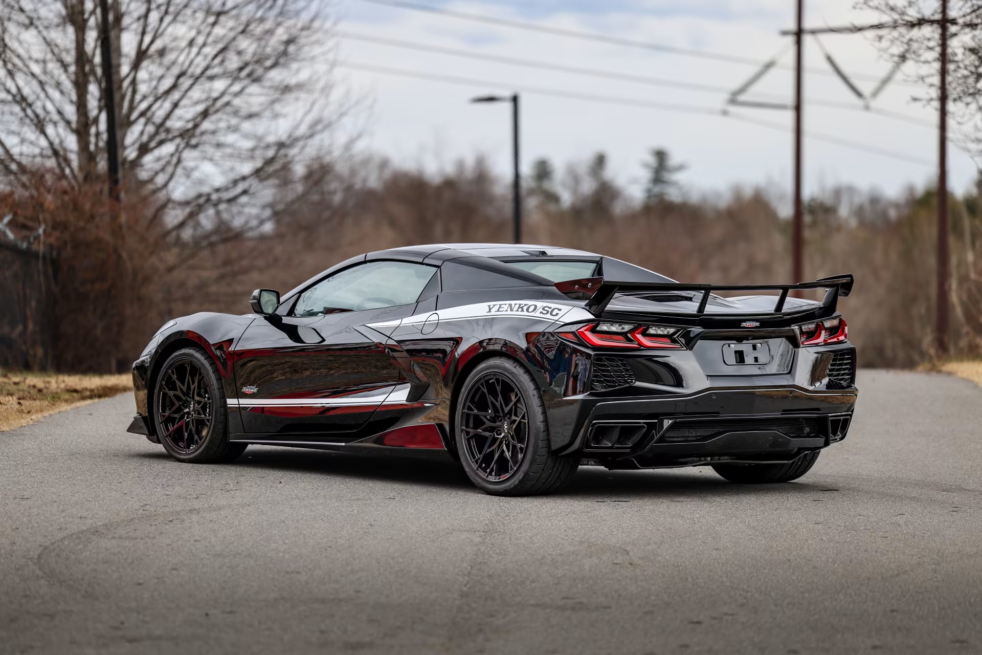 Finished in Jet Black over a black interior, this convertible is powered by a Yenko/SC–engineered 6.2-liter LT2-based V-8 featuring an aluminum block and forged internals. The engine is rated at a staggering 1,000 horsepower and 900 lb-ft of torque, achieved through extensive upgrades. Power is sent through an upgraded Stage 1 dual-clutch automatic transmission designed to handle the immense output.