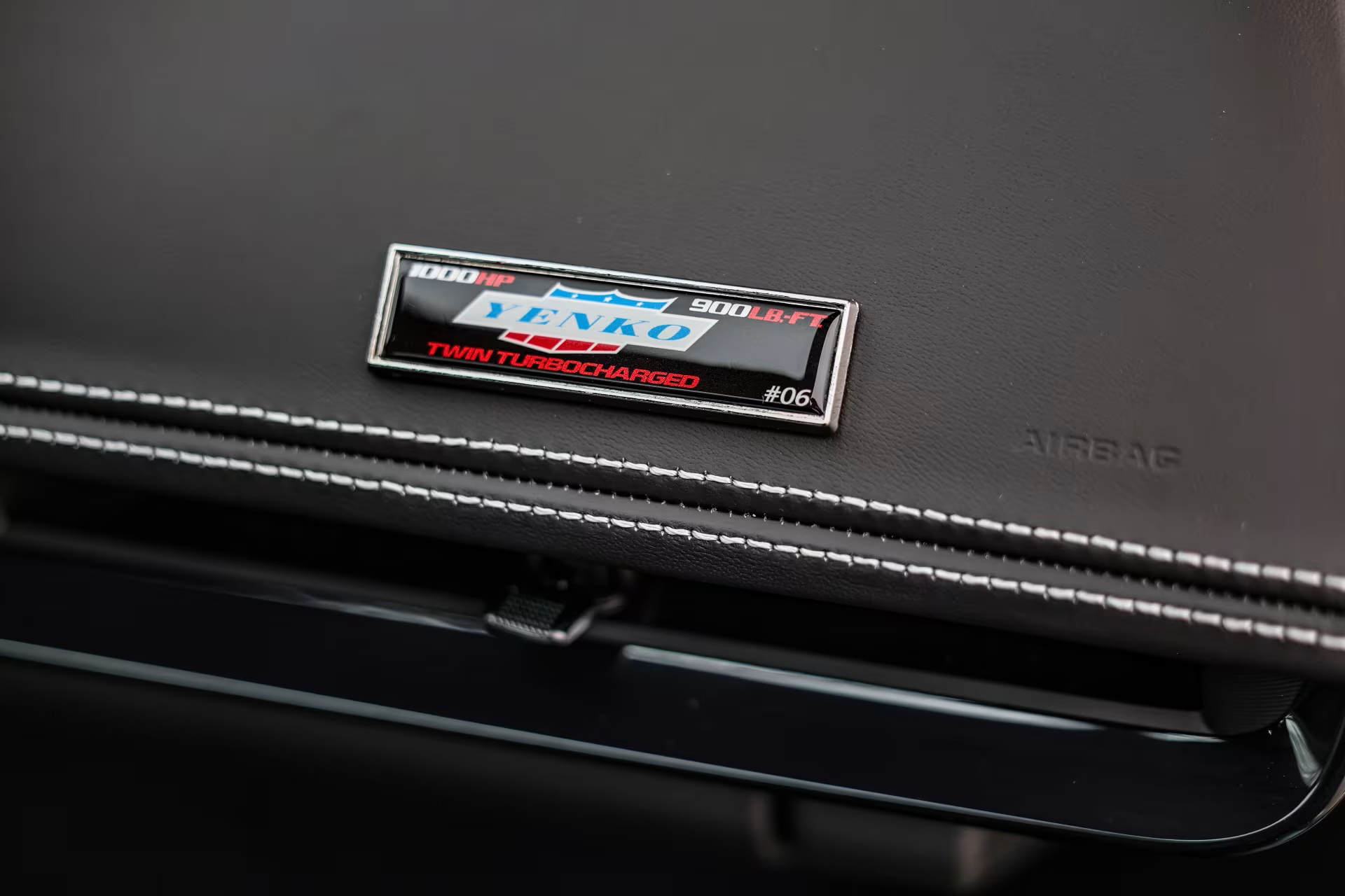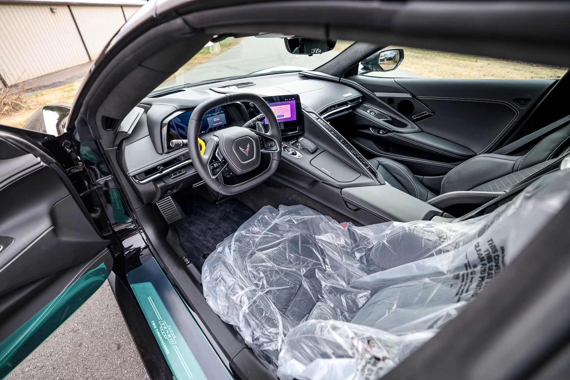 Visually, the car is distinguished by Carbon Flash front splitter and ground effects, a high-wing rear spoiler, and a black-finished Yenko-exclusive exhaust. Yenko badging is featured throughout, including on the brake calipers, reinforcing its limited-production status. Inside, the Corvette is equipped with dual-zone climate control, heated and cooled leather seats, power seats with memory, carbon fiber interior accents, power windows and locks, and a Bose Performance Series audio system.
