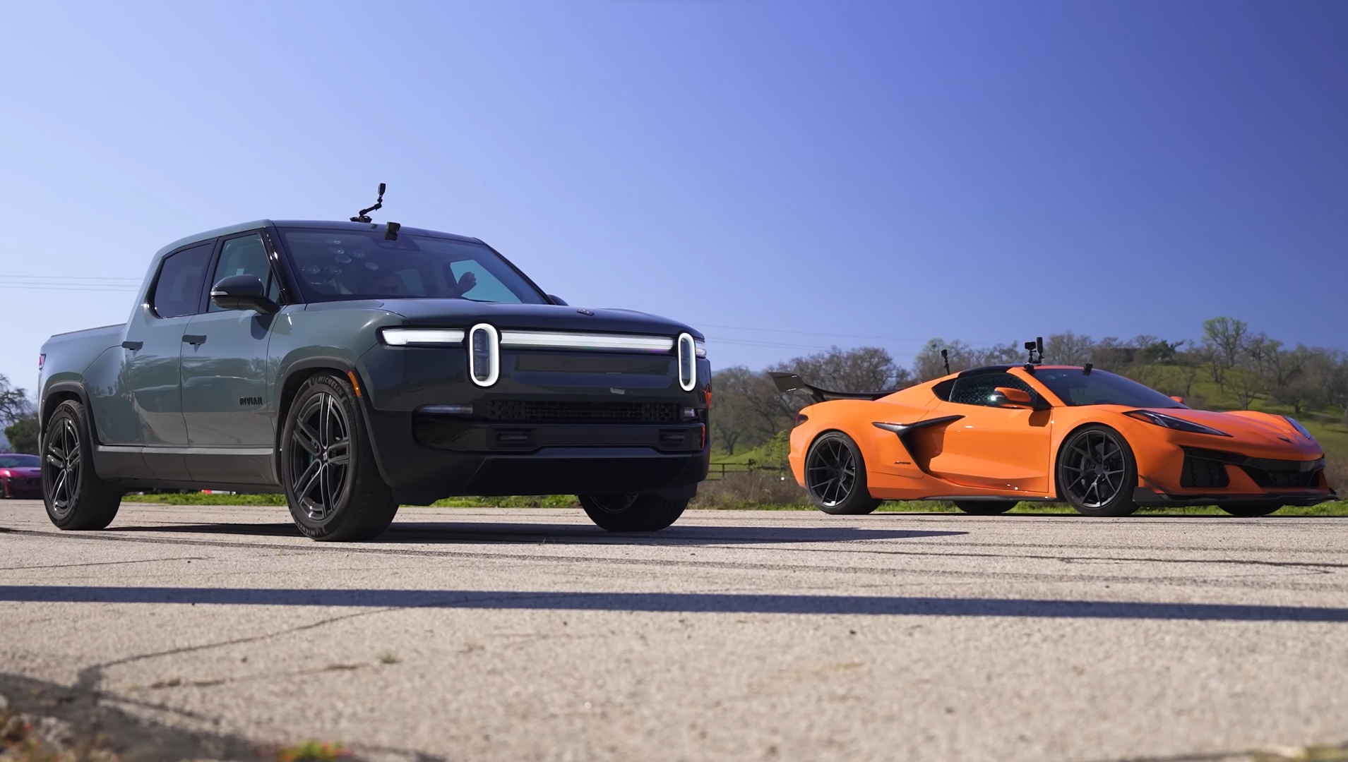 In the standing quarter mile—the ultimate test—it all comes down to execution. After a series of neck-and-neck launches and traction tweaks, the Rivian finally hooks up perfectly and storms ahead, clocking a blistering 10.6 seconds. The Corvette follows at 11.3 seconds, proving that even America’s finest V8 weapon can’t quite outgun cutting-edge EV muscle—at least off the line.