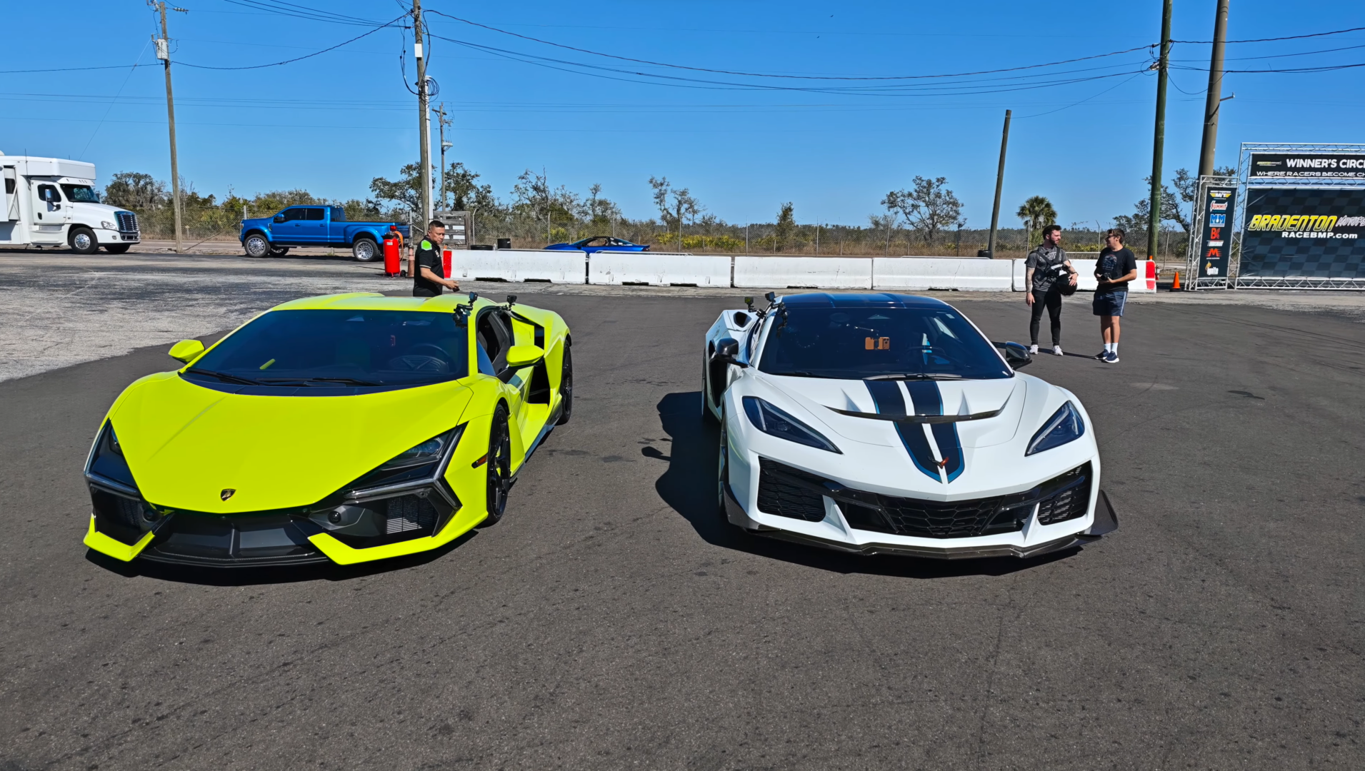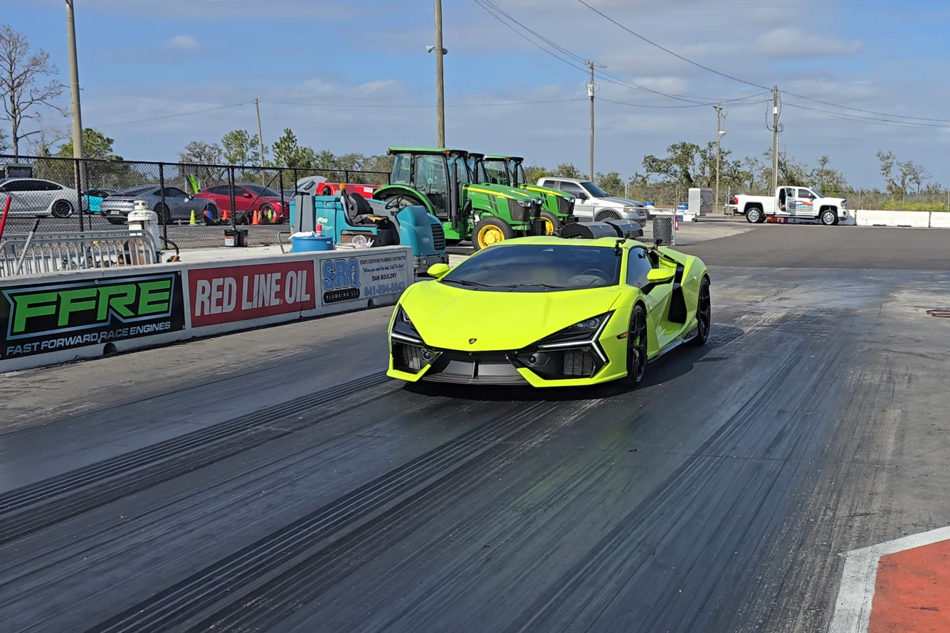 A rematch at Bradenton Motorsports Park pits Wheeler’s modified Chevrolet Corvette ZR1 against a tuned Lamborghini Revuelto in a series of quarter-mile runs filmed by DragTimes.