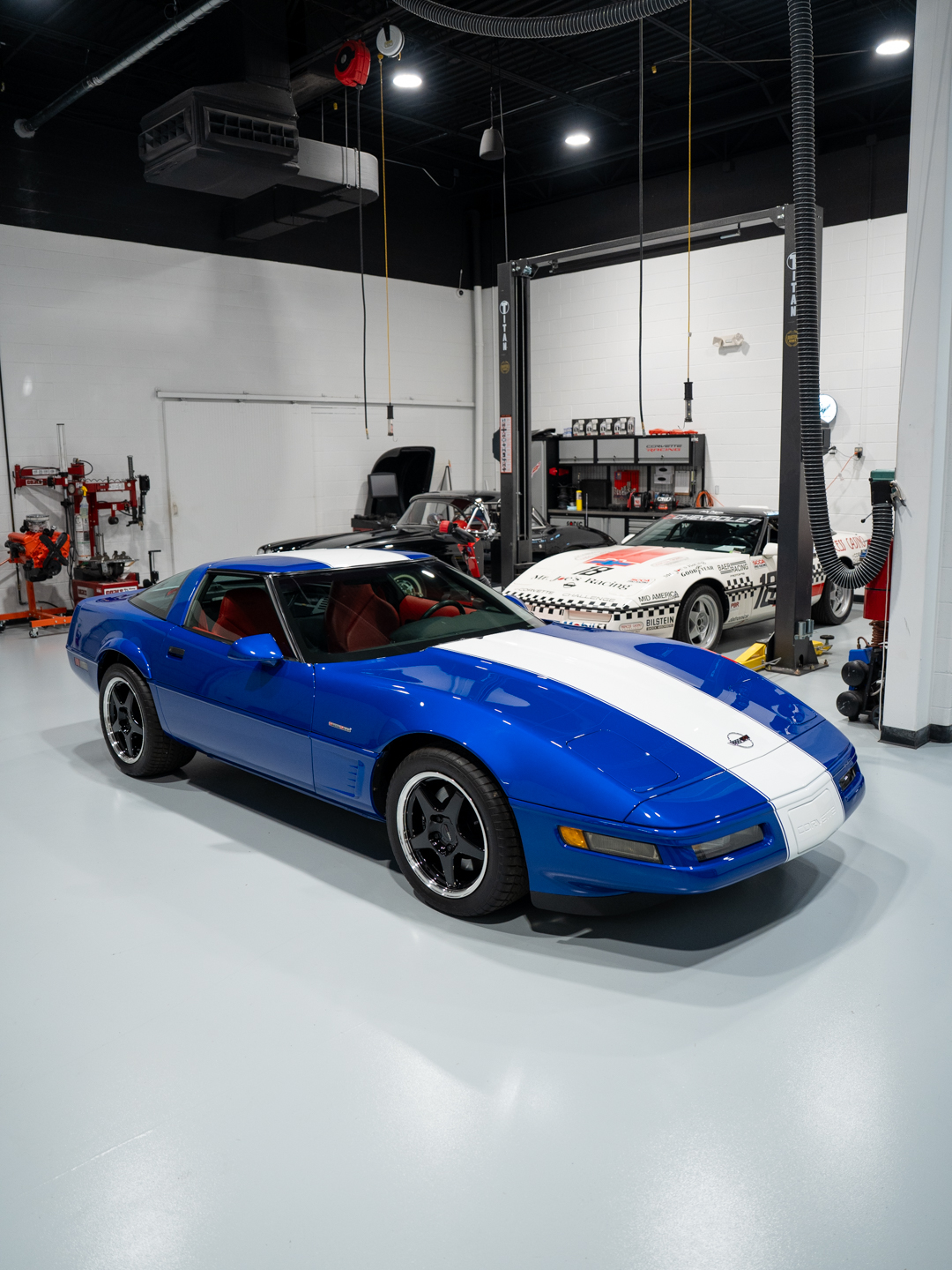 To understand today’s excitement, you have to go back to 1996—when General Motors built exactly 1,000 Grand Sports to close out the C4 era. That run consisted of 810 coupes and 190 convertibles, each finished in Admiral Blue with Arctic White striping—a direct visual tribute to the original 1963 Grand Sport race cars. The signature red hash marks over the left front fender weren’t just decoration; they echoed the color-coded identifiers used on those early race machines. Under the hood, the LT4 5.7-liter V8 didn’t just deliver performance—it introduced technology that would directly influence the LS1 engine that followed in the C5. This wasn’t just a special edition; it was a bridge between eras.