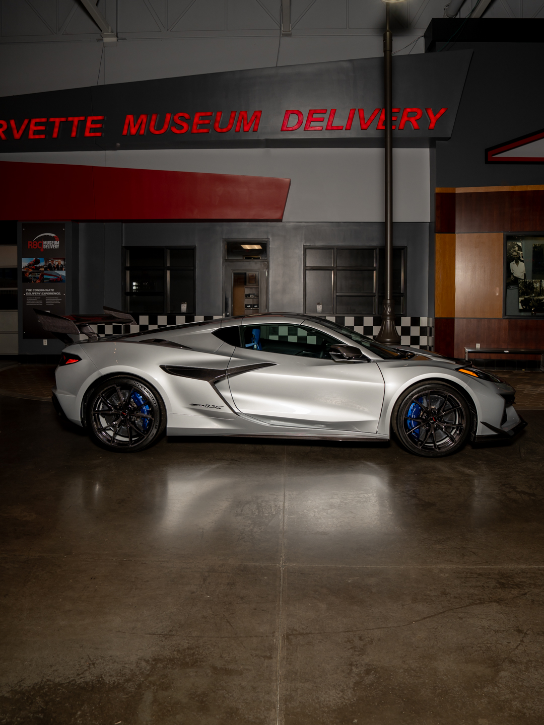 “The 2026 Corvette ZR1X represents a defining step forward for America’s Sports Car. With a hybrid architecture combining a 5.5L twin-turbo LT7 V8 and an electric motor, it produces 1,250 horsepower delivered through an all-wheel-drive system. The result is a new level of capability, including acceleration to 60 mph in under 2 seconds, a top speed exceeding 230 mph, and quarter-mile times in the 8-second range. Extensive carbon fiber integration and the largest braking system ever fitted to a Corvette reflect a focused approach to engineering at the highest level. This Blade Silver Metallic ZR1X arrived through our R8C Delivery Program today, bringing this next chapter of Corvette innovation directly to the Museum. Learn more about the R8C Delivery experience.”